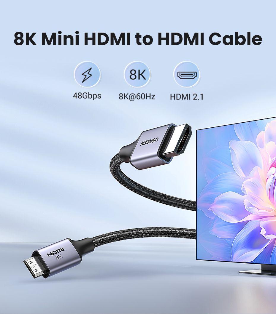 ✨Ugreen UG15514HD163TK 1M 8K60Hz 2.1 Cáp chuyển Mini HDMI sang HDMI dây bọc dù - HÀNG CHÍNH HÃNG