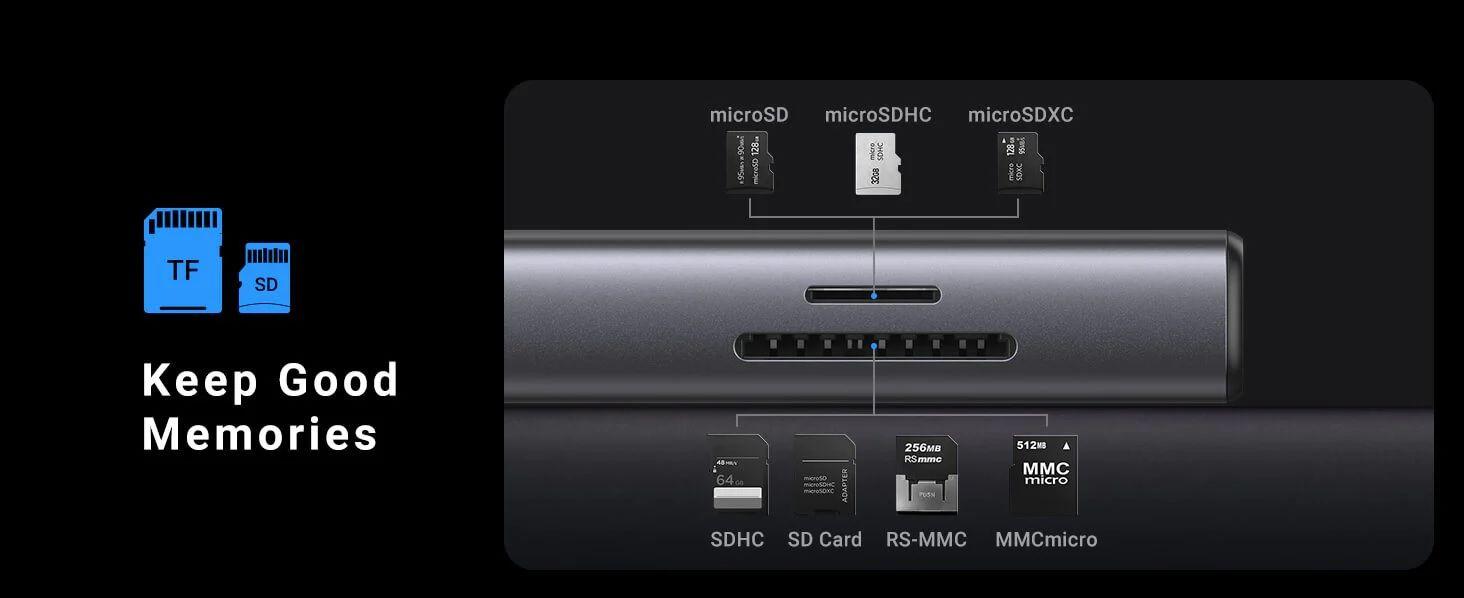 ✨Ugreen UG15532CM498TK USB type C sang 1 x HDMI 4K60hz + 1 x USB-C 3.2 + USB-A 3.2 10Gbps + 1 x RJ45 1Gbps + TF + SD + 2 x USB 3.0 + 1 x USB-C PD 100W Bộ chuyển 9in1 - HÀNG CHÍNH HÃNG