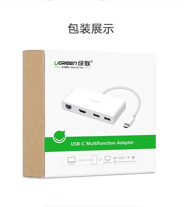 ✨Ugreen UG40378MM135TK 15CM màu Trắng Bộ chuyển đổi TYPE C sang 2 USB 3.0 + VGA + LAN bọc nhựa ABS - HÀNG CHÍNH HÃNG