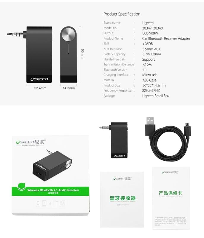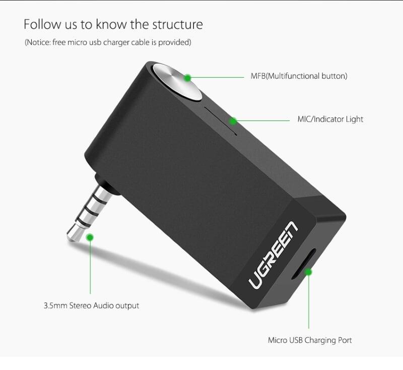 Mua tại TiktokUgreen 40756 Pin 120mah Aptx No Mic Bộ Nhận Âm Thanh Bluetooth Receiver MM114