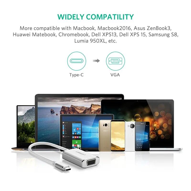 Mua tại TiktokUgreen 40866 15CM usb type c to vga converter bạc cm114