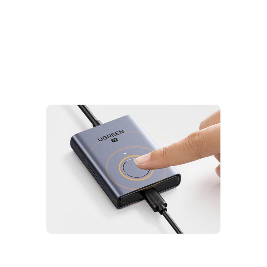 1. UGREEN 2 IN 4 OUT HDMI switcher offers an easy solution for you to share 2 devices to 4 monitors such as Mac book, PC with your HDTV for video output, saves the cables