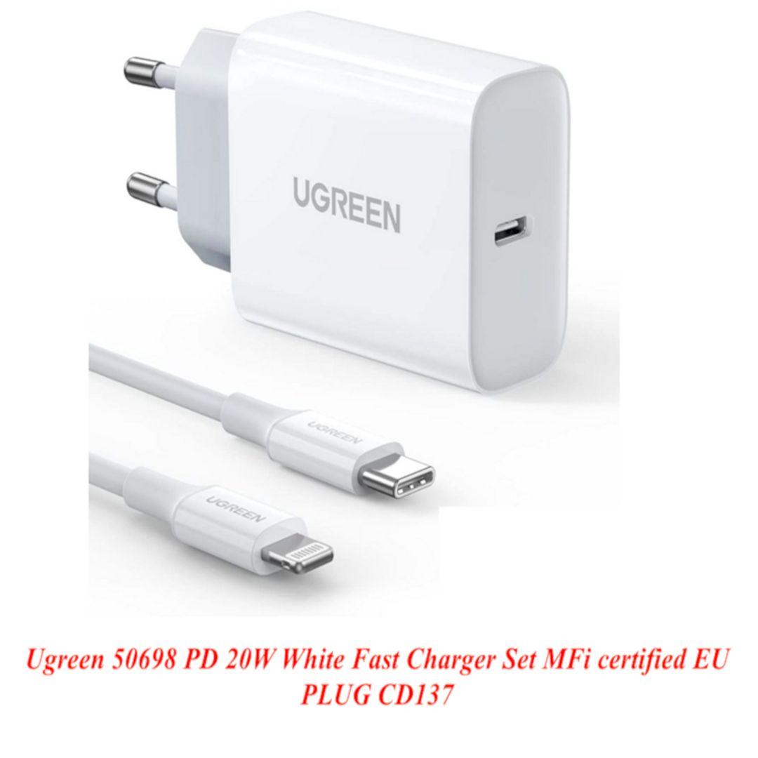 ✨Ugreen UG50698CD137TK 1M PD 20W USB-C 3.0 Màu Trắng Bộ sạc + cáp sạc nhanh Lightning dành cho iPhone 13 12 Pro Max 11 Pro SE 2022 X XS XR 8 Plus - HÀNG CHÍNH HÃNG