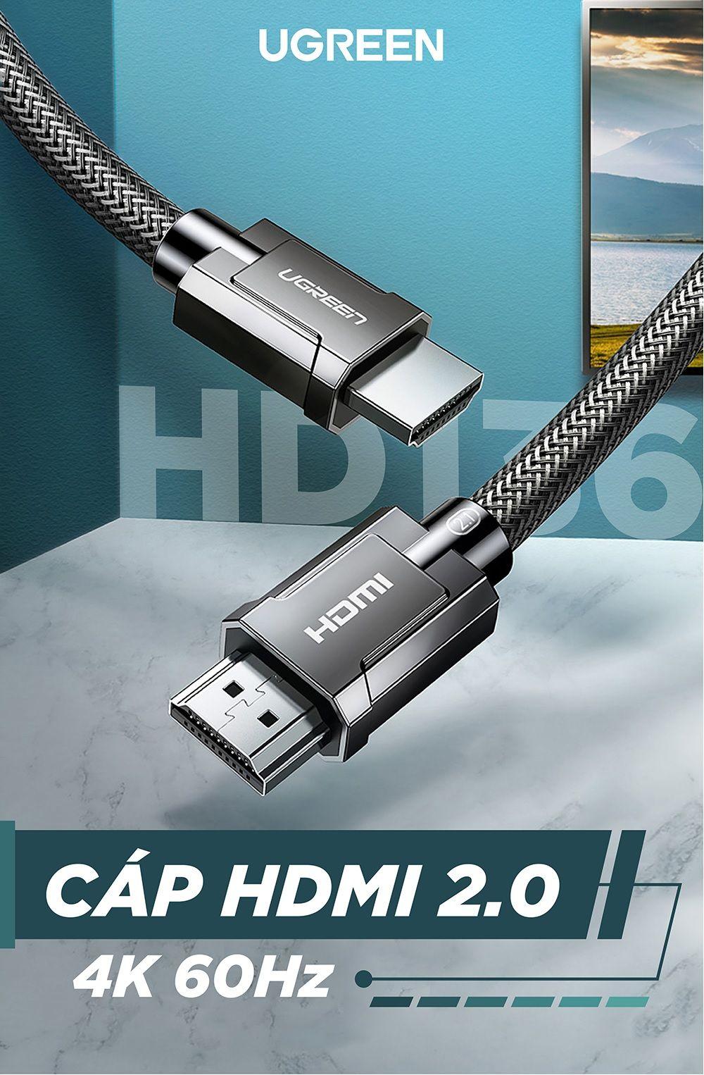 Giới thiệu sản phẩm - Cáp HDMI 2.0 Dài 2M U.green 60440 là dòng sản phẩm cáp HDMI cao cấp mới nhất của thương hiệu U.green được nâng cấp nguyên vật liệu, chất lượng tốt nhất bao