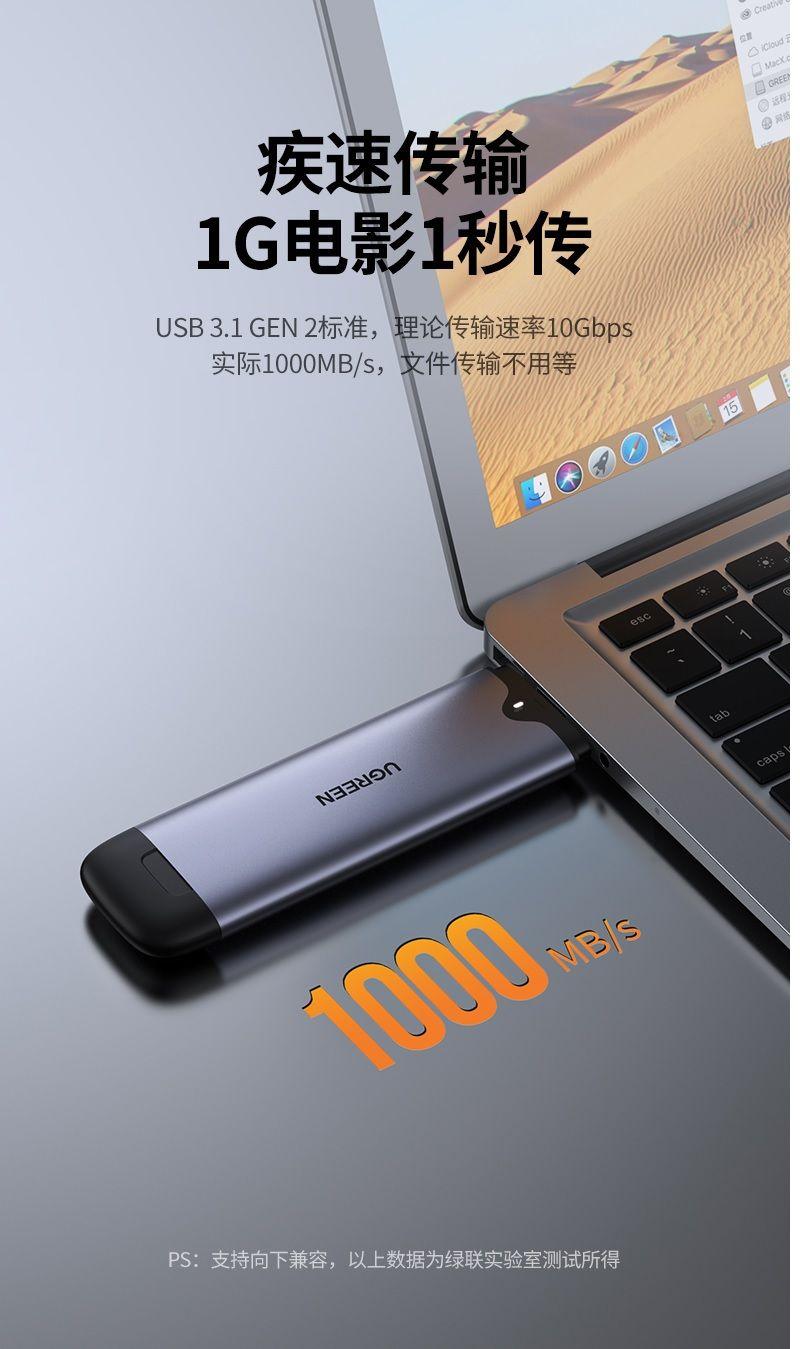 Cận ccảnh Hộp box đựng ổ cứng gắn ngoài USB-C 3.1 to SSD M.2 NVMe, PCIe, M-Key 10Gbps Ugreen 10902