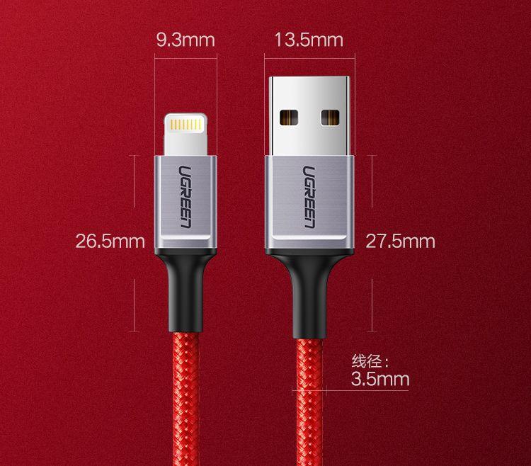 ✨Ugreen UG80635US293TK 1M màu đỏ cáp Lightning ra USB có chíp MFI chính hãng - HÀNG CHÍNH HÃNG