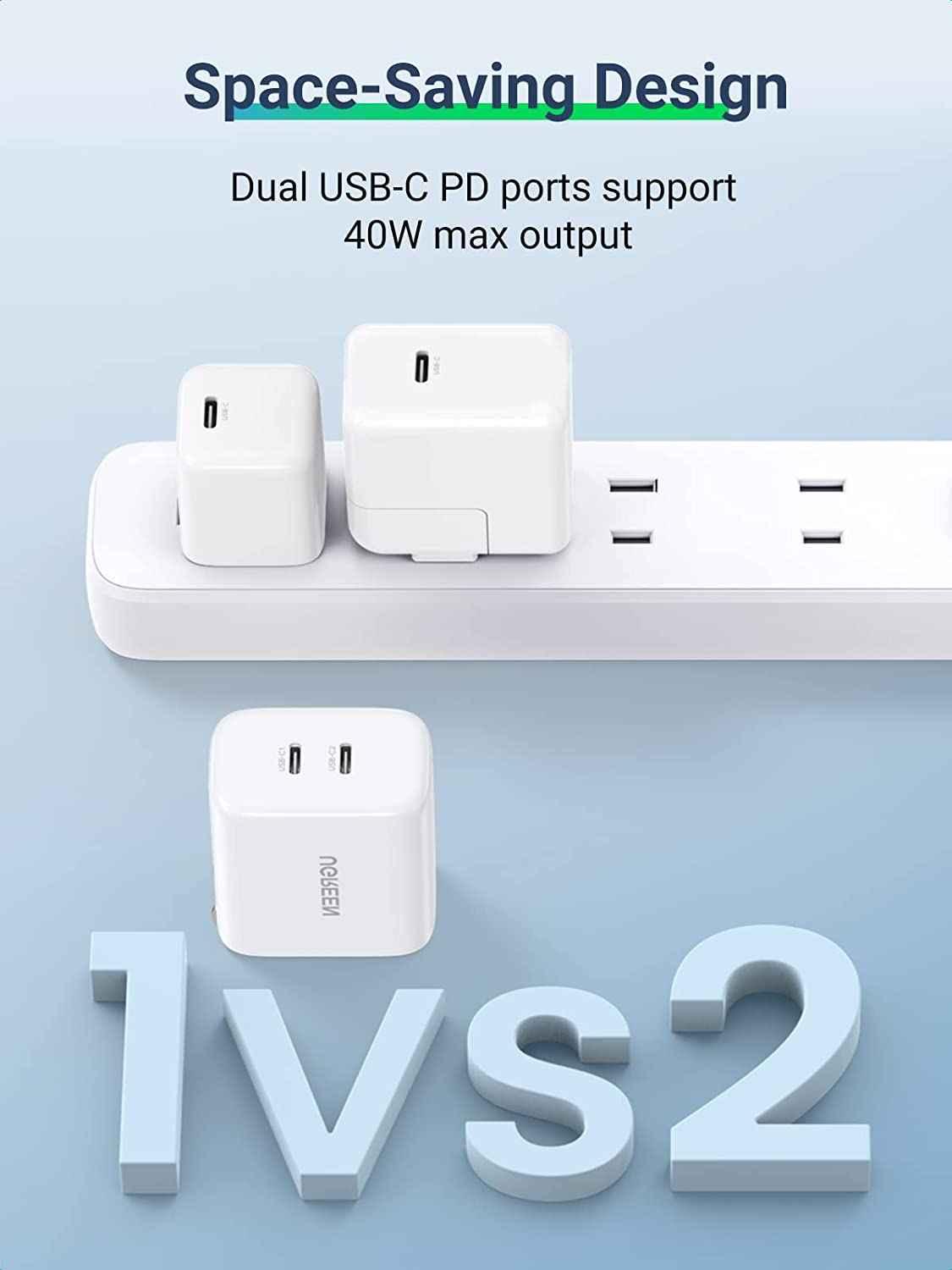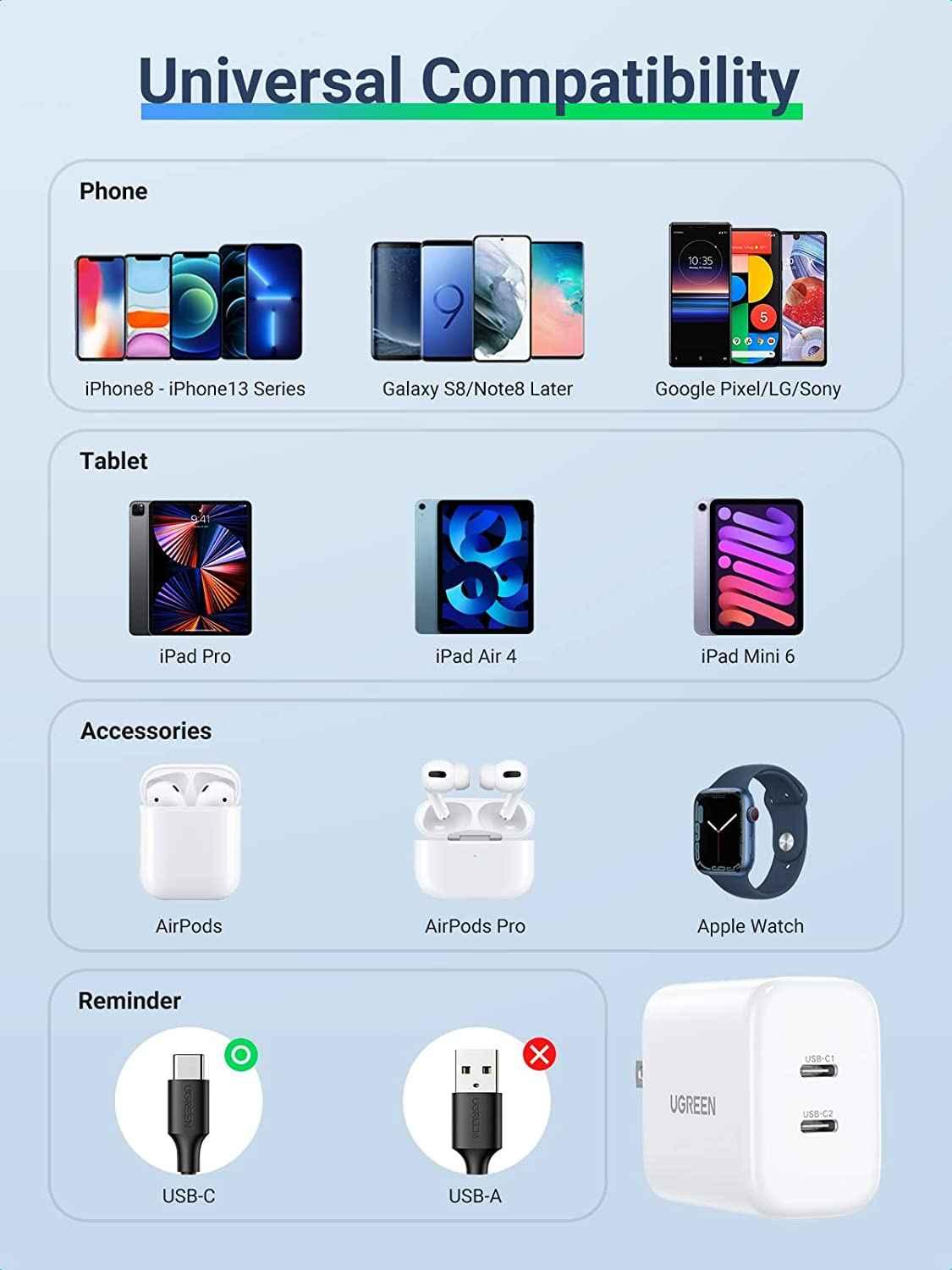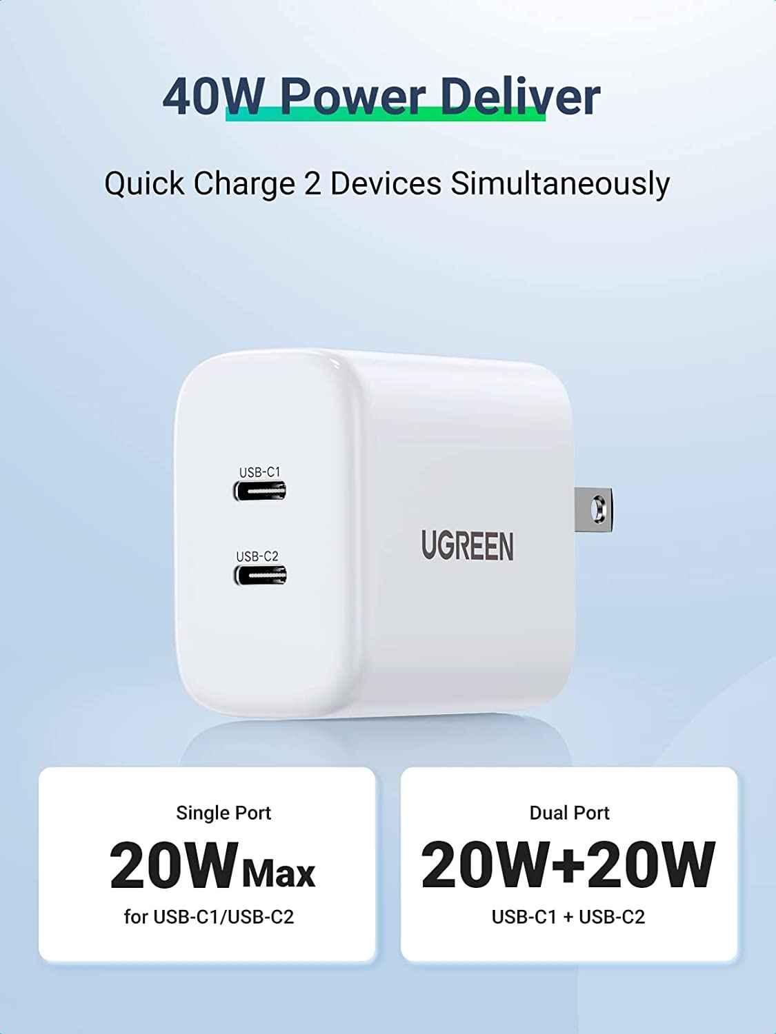 ✨Ugreen UG90299CD243TK 40W Bộ sạc nhanh 2 cổng USB-C chuẩn cắm US Màu Trắng - HÀNG CHÍNH HÃNG