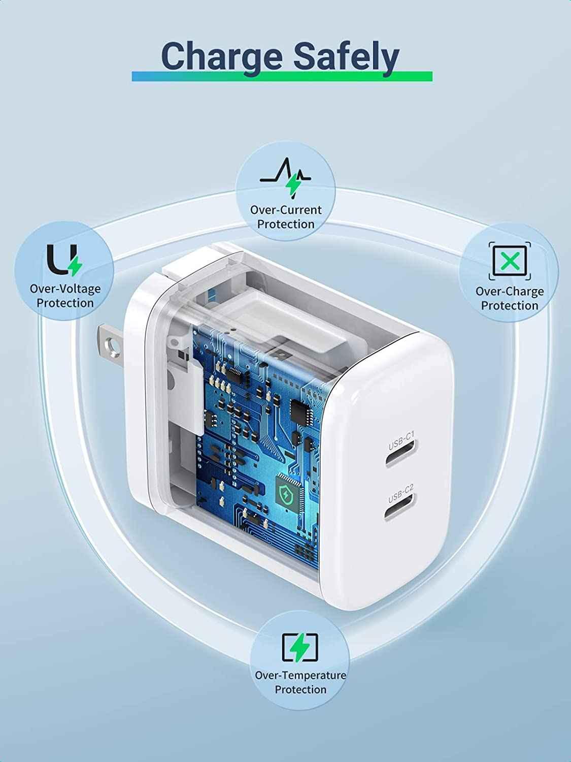 1. 2 USB Ports Charger 36W 2. PD3.0 / QC3.0 3. Support all devices 4. Automatically disconnects, and at the same time has some protection against overcharging and overvoltage 5. 10 x 10 x 5