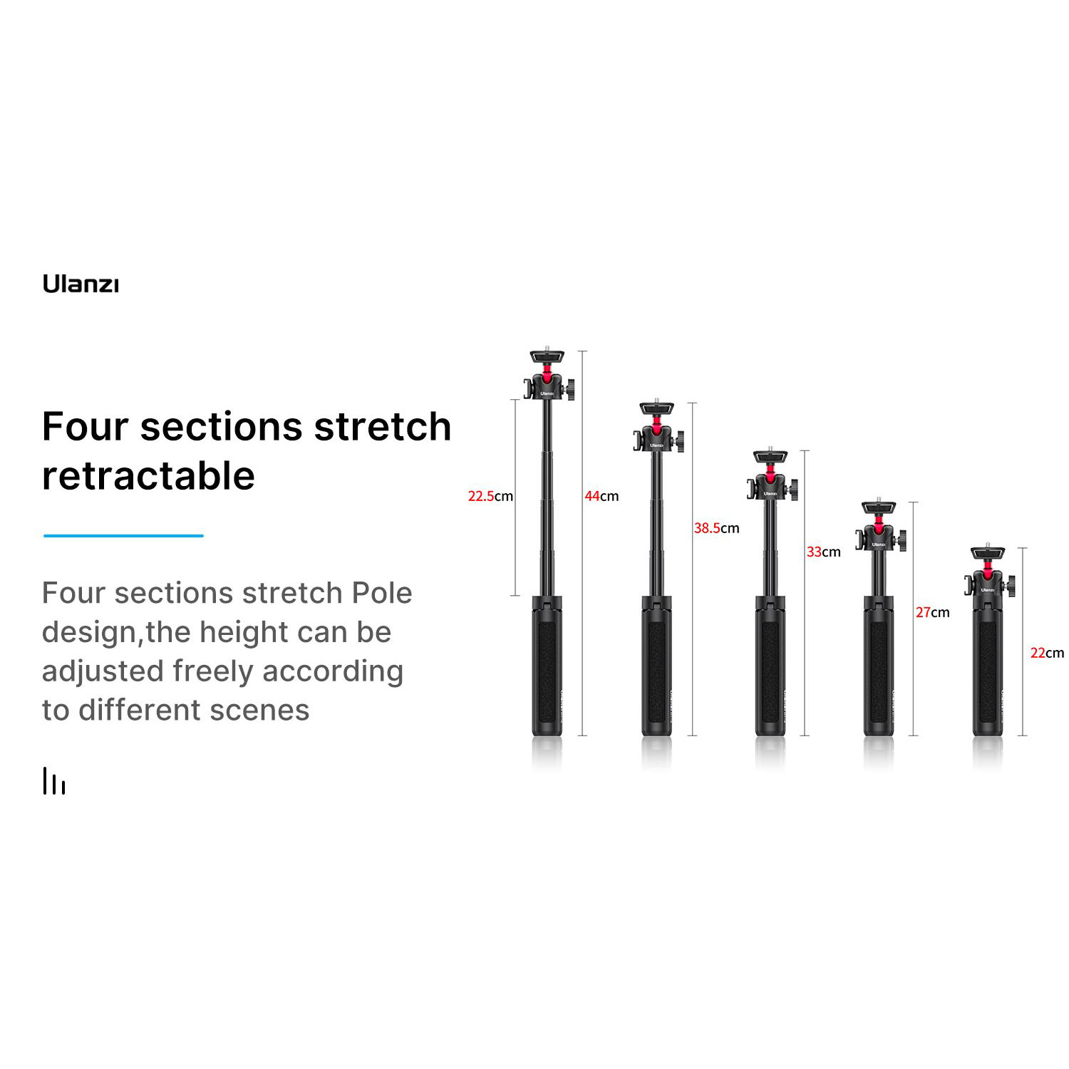 Tripod chân ba Ulanzi MT-16 dùng cho điện thoại, máy ảnh, Gopro - Kéo dài làm gậy tự sướng