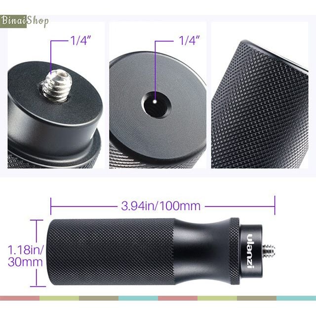 - 01 Tay cầm Ulanzi U-40. THÔNG SỐ KỸ THUẬT Brand Ulanzi Product code U-40 Material Alluminum, ABS, Silicon Power supply AA Baterry x2 Net.Weight 1kg
