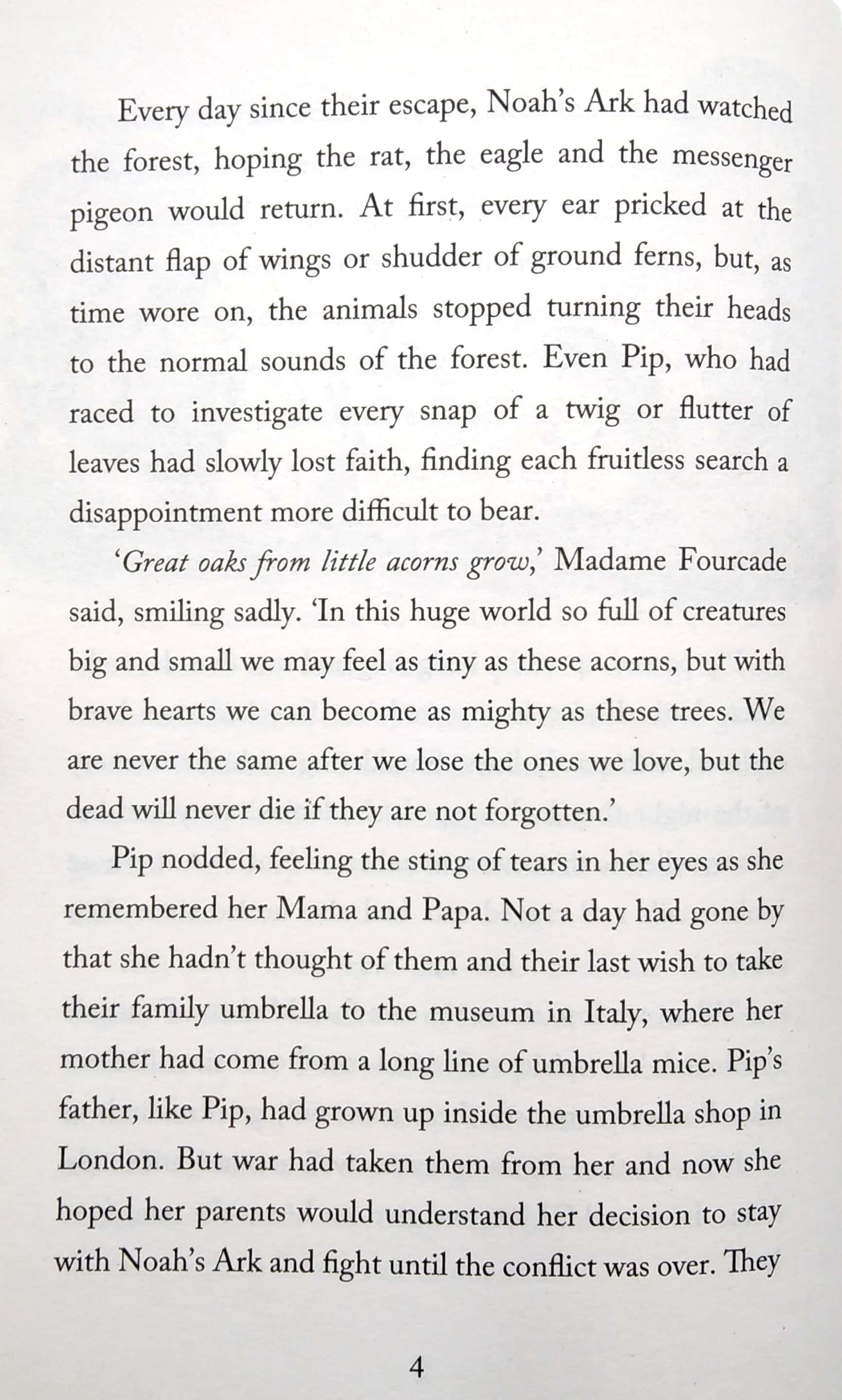 Young mouse Pip Hanway is in France as she continues fighting for the French Resistance group Noah's Ark: a secret gang of animals operating beneath the feet of human soldiers, whose aim is to liberate France and secure the victory of the Allies. Determined to reach her ancestral home of the Umbrella Museum in Italy, Pip hopes she can find long-lost family and a home. But as Pip makes the perilous journey through occupied territory, she soon realizes that danger comes from all sides and that the enemy is all around, and she does everything she can to fight for her friends.