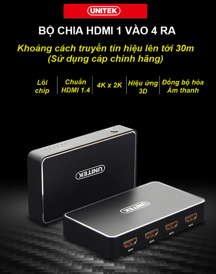✨Unitek V109A - Bộ Chia HDMI 1 ra 4 Độ Phân Giải 4K HD Hỗ Trợ 3D Khoảng Cách Truyền Lên Tới 30m Kèm Nguồn AnZ - Hàng Chính Hãng