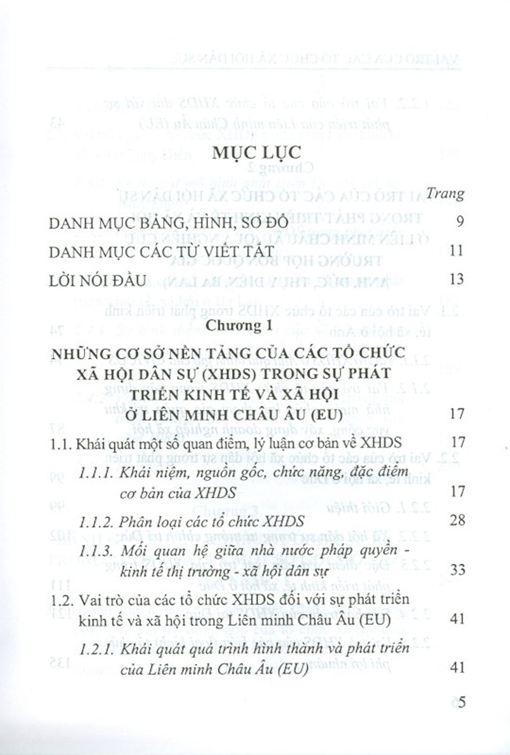 Chương 1: Những cơ sở nền tảng của các tổ chức xã hội dân sự (XHDS) trong sự phát triển kinh tế và xã hội ở Liên minh Châu Âu (EU)