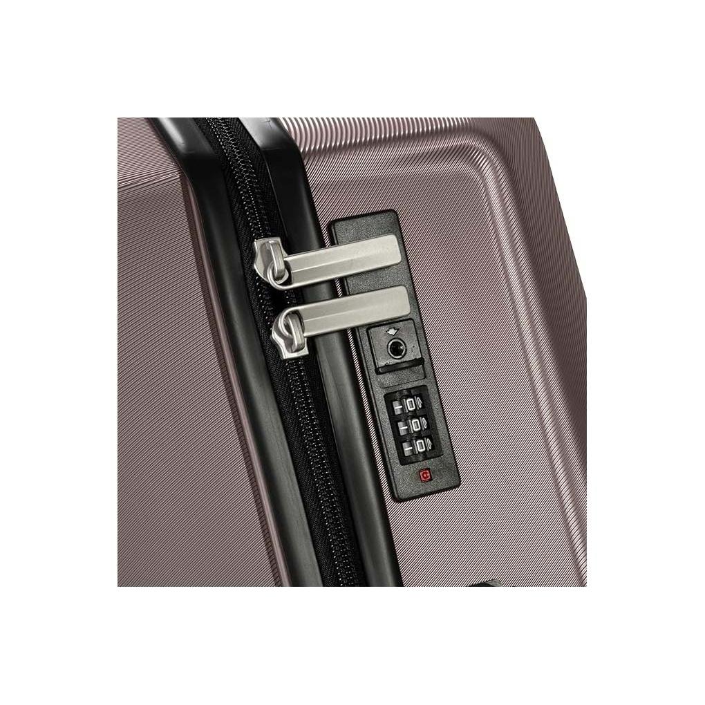 1. Khả năng nới rộng: 5 cm 2. Phía dưới vali có tay cầm đúc, quai xách ngang, khóa TSA theo tiêu chuẩn Hoa Kỳ 3. Bánh xe đôi xoay 360 độ 4. Phía trong
