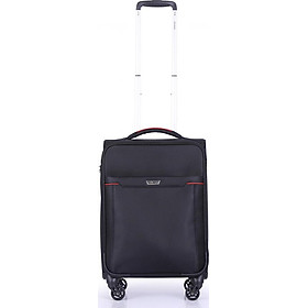 Vali Kéo Du Lịch đen Phối đỏ Có Nắp - 22 Inch được thiết kế từ chất liệu vải Polyester có độ bền cao, chống thấm nước tối ưu giúp bảo vệ hành lý bên