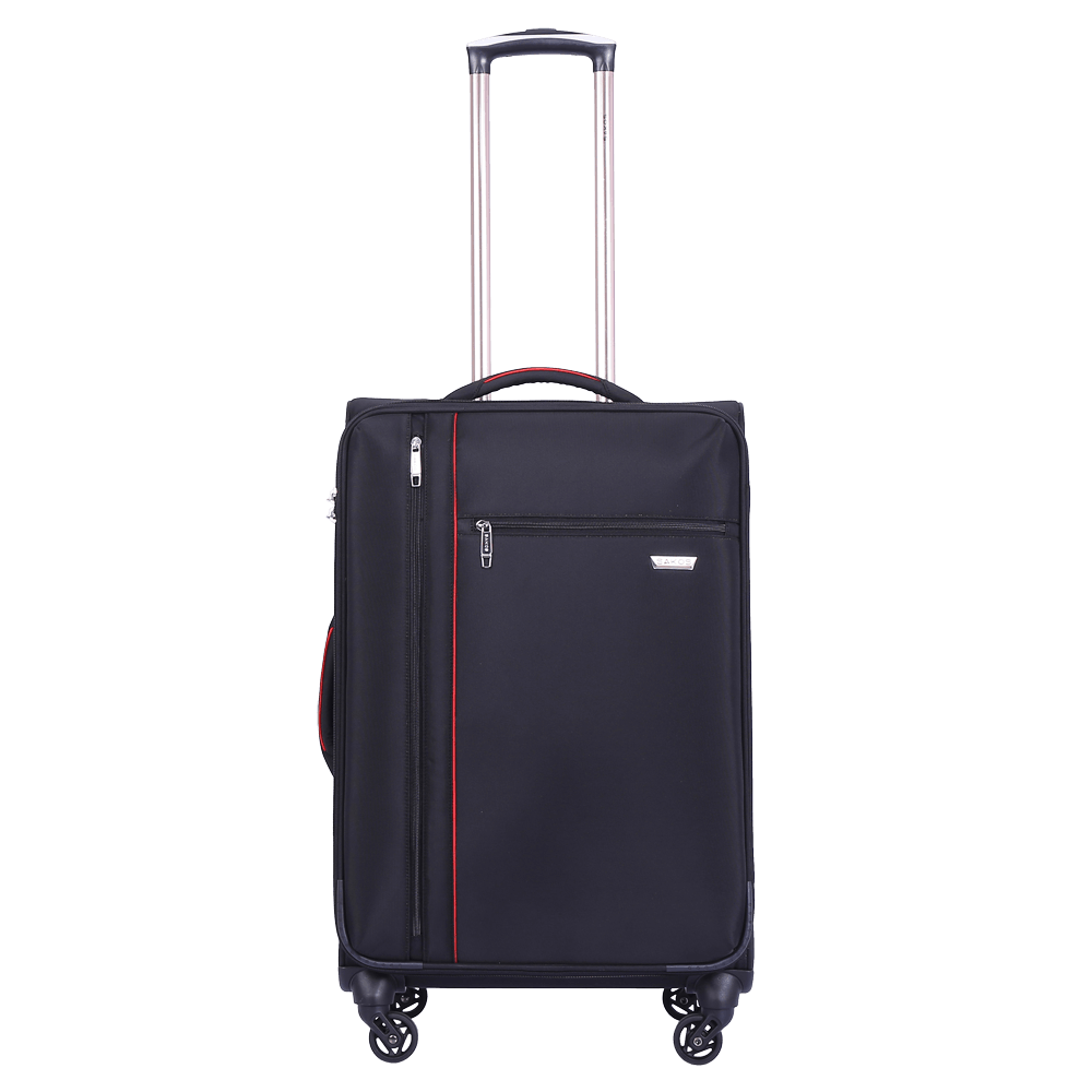 Vali Kéo Du Lịch  đen Phối  đỏ Có Nắp - 22 Inch được thiết kế từ chất liệu vải Polyester có độ bền cao, chống thấm nước tối ưu giúp bảo vệ hành lý bên