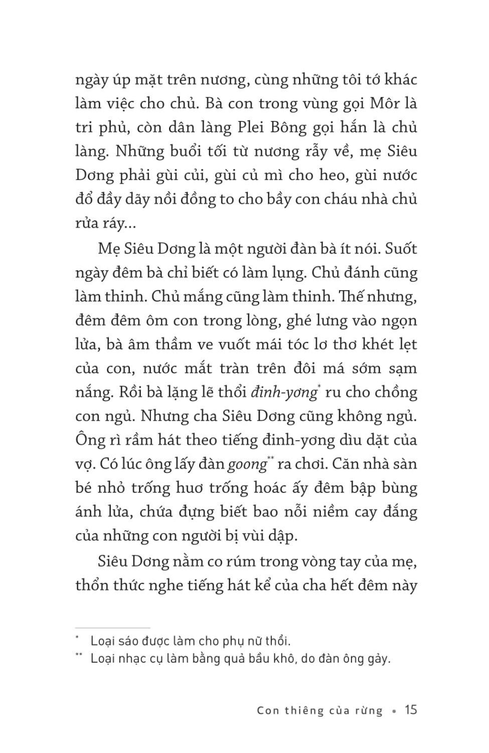 Tác phẩm được kể theo trình tự thời gian, ứng với các bước đi trong cuộc đời chú bé Siêu Dơng người dân tộc Ba Na. Từ tấm bé, Dơng và bố mẹ đã bị đám chánh tổng và tri phủ làm tay sai cho Pháp mua đi bán lại, bị bóc lột sức lao động đến cùng cực. Lớn lên, Siêu Dơng vẫn không thoát khỏi sự đàn áp của tên chánh tổng, bị hắn bức hại tới mức mất vợ, mất con. Chỉ tới khi Cách Mạng tới, cuộc đời anh mới sang trang. Nhờ Cách Mạng, Siêu Dơng được đi học, xây dựng hạnh phúc mới và tìm lại niềm đam mê hội họa. Từ đây, anh dành cả cuộc đời mình để vẽ những bức tranh phục vụ bà con Tây Nguyên.