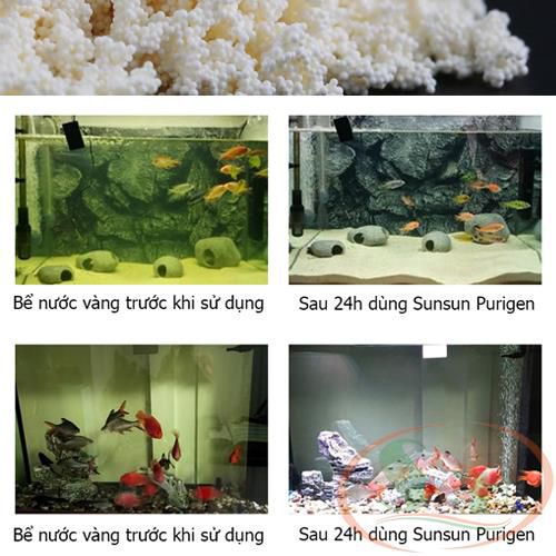 Sunsun Purigen Decontamination sở hữu diện tích bề mặt lớn, hiệu suất lọc cao mặc dù kích thước hạt rất nhỏ, giúp khử mùi tanh, làm sạch và trong nước rõ rệt sau 24 tiếng sử dụng. Ngoài ra, Sunsun Purigen còn giúp khử ammoniac, nitrite, nitrate mà không hề tác động đến các nguyên tố vi lượng có lợi trong bể.