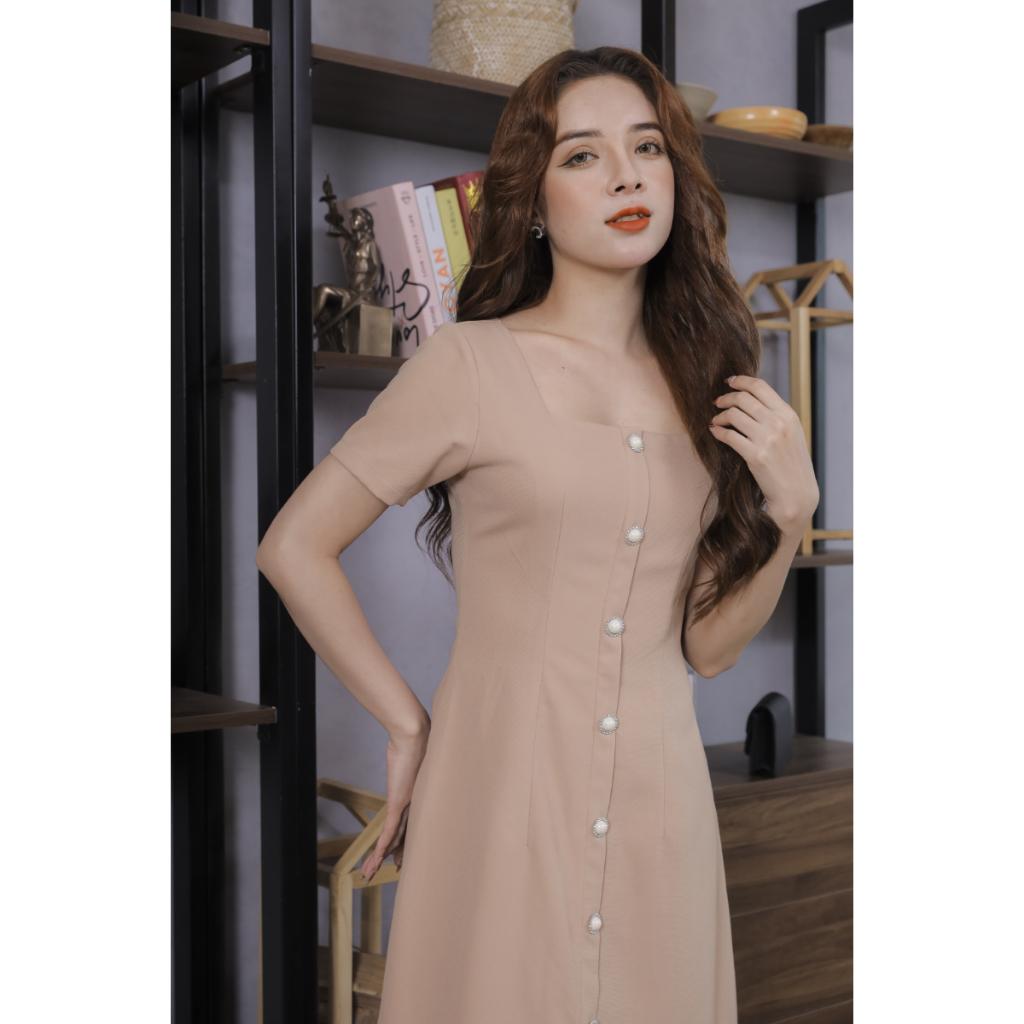 ✨Váy Màu Hồng Be Cúc Trước Thanh Lịch 23V007 Cao Cấp Pi Style