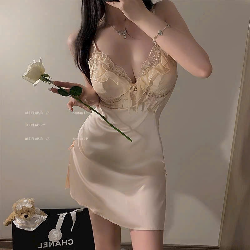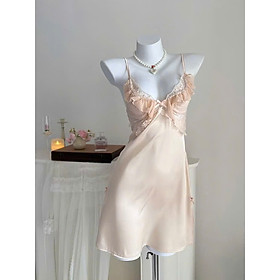 Váy ngủ lụa phối viền ren nơ cột sau Nội Y Đẹp
