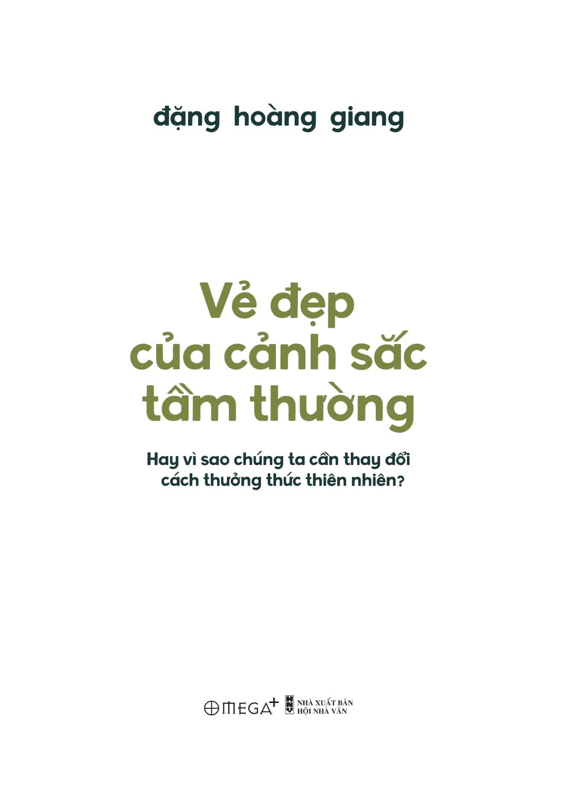 “Vẻ đẹp của cảnh sắc tầm thường - Hay vì sao chúng ta cần thay đổi cách thưởng thức thiên nhiên?” là tác phẩm mới nhất của tác giả Đặng Hoàng Giang. Trong 9 năm qua, tác giả Đặng Hoàng Giang đã viết 5 đầu sách được đón nhận rộng rãi với tổng cộng khoảng một phần tư triệu bản đã được bán ra.