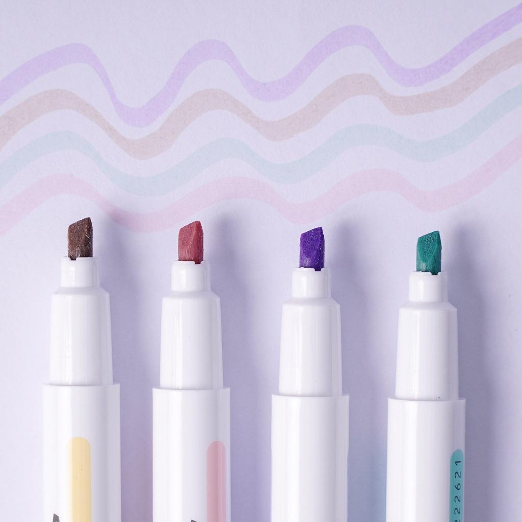 • Highlight Macarons đa năng: vừa có thể highlight đánh dấu, vừa viết calligraphy cơ bản, vừa tạo được các stiker trang trí sổ vở, có đầu ánh nhũ, có đầu doubleline 2 màu tiện lợi
