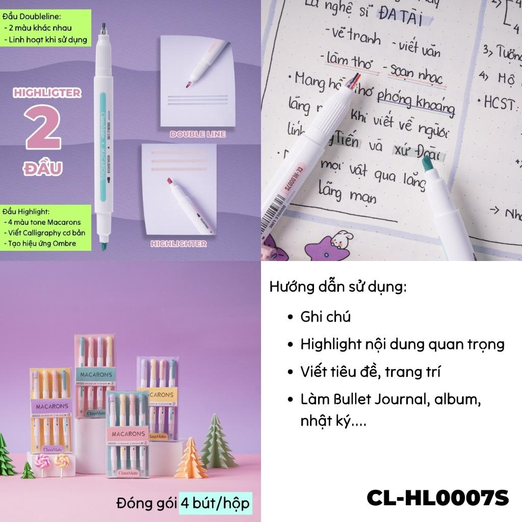 ✨Vỉ 4 Bút Highlight Màu Nhũ 2 Ngòi Macarons - ClassMate CL-HL0007S (Mẫu Bao Bì Giao Ngẫu Nhiên)