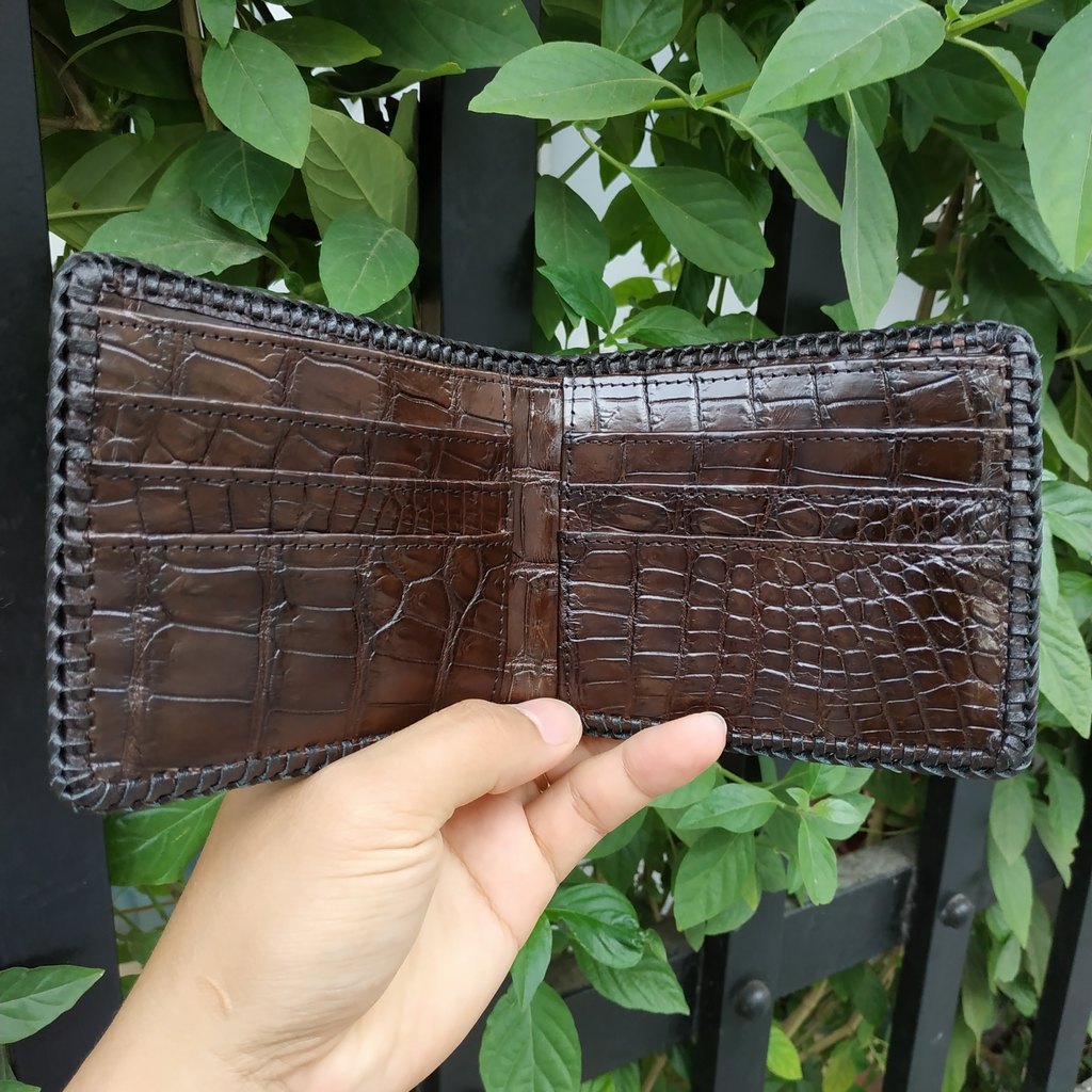 Ví Da Cá Sấu Thái Lan 2 Mặt Đan Viền Thủ Công #vidacasau #vida #bopdacasau