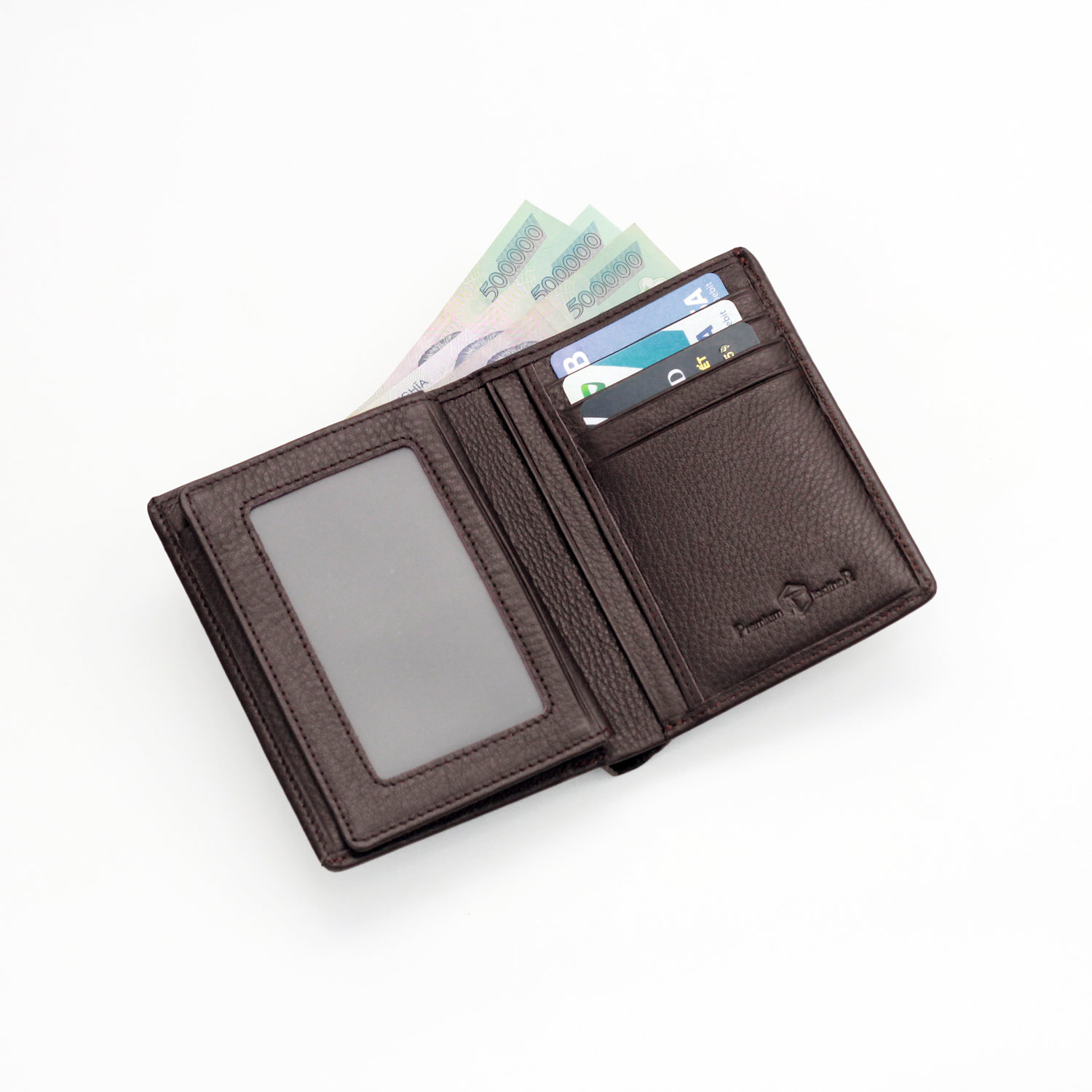 Ví đứng da bò thật 100% mẫu ví màu nâu sang trọng tại Leather20