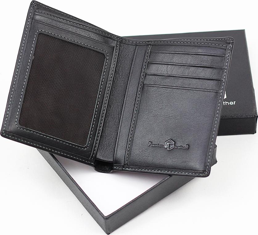 ✨Ví đứng da bò nam cao cấp AT Leather 062 (12 x 9.5 cm) - Đen