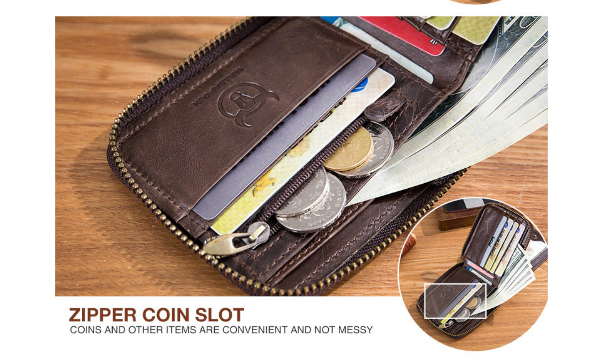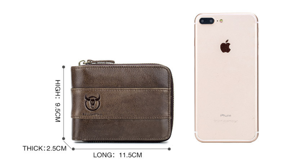 - Màu sắc : Đen, Nâu - Kích thước : 12 x 10.5 cm - Chất liệu : 100% Da bò - Thiết kế gồm 2 ngăn lớn, 1 ngăn dây kéo cùng nhiều ngăn