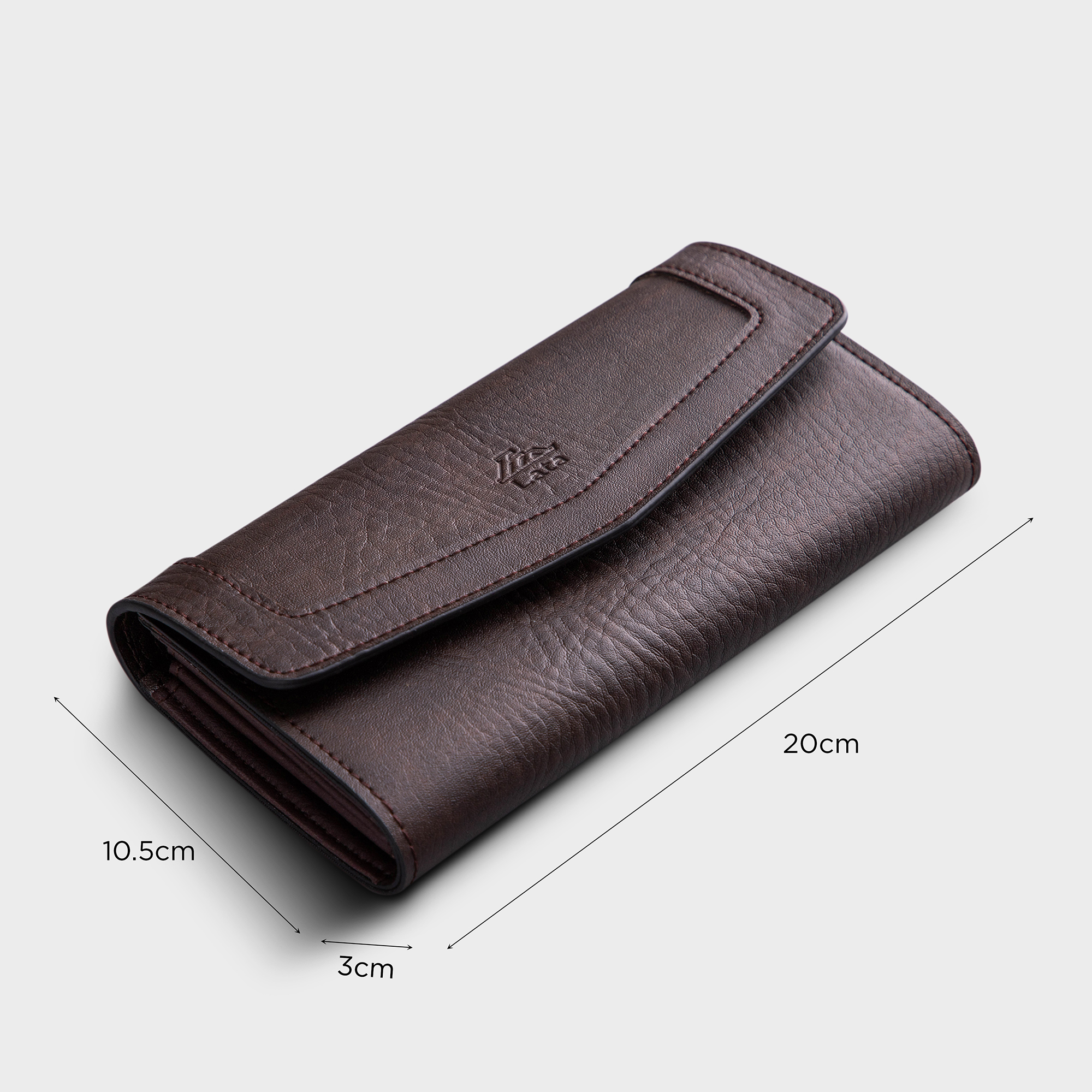 Ví da nữ cầm tay YUUMY YV75 được thiết kế dáng đứng phổ thông, gập đôi tiện dụng, kích thước vừa tay và siêu mỏng. Ví gồm 2 ngăn lớn đựng tiền mặt và nhiều
