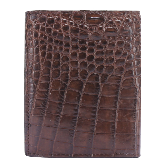 Ví nam đứng da cá sấu 2 mặt Konavis màu nâu làm từ vân gù cá sấu - CW02-02G