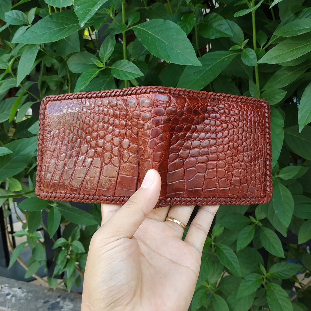 Ví Da Cá Sấu Thái Lan 2 Mặt Đan Viền Thủ Công #vidacasau #vida #bopdacasau