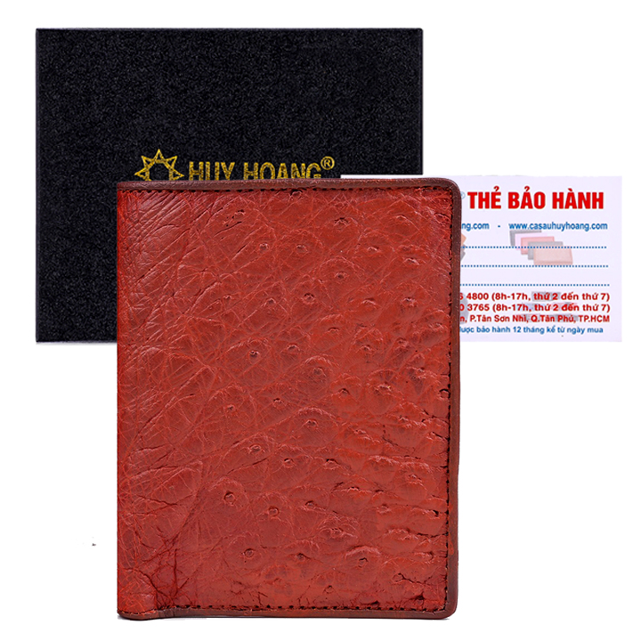 Bóp/Ví da đà điểu Huy Hoàng da chân kiểu đứng màu nâu đỏ, vàng bò, đen, nâu đất 2411-12-13-15