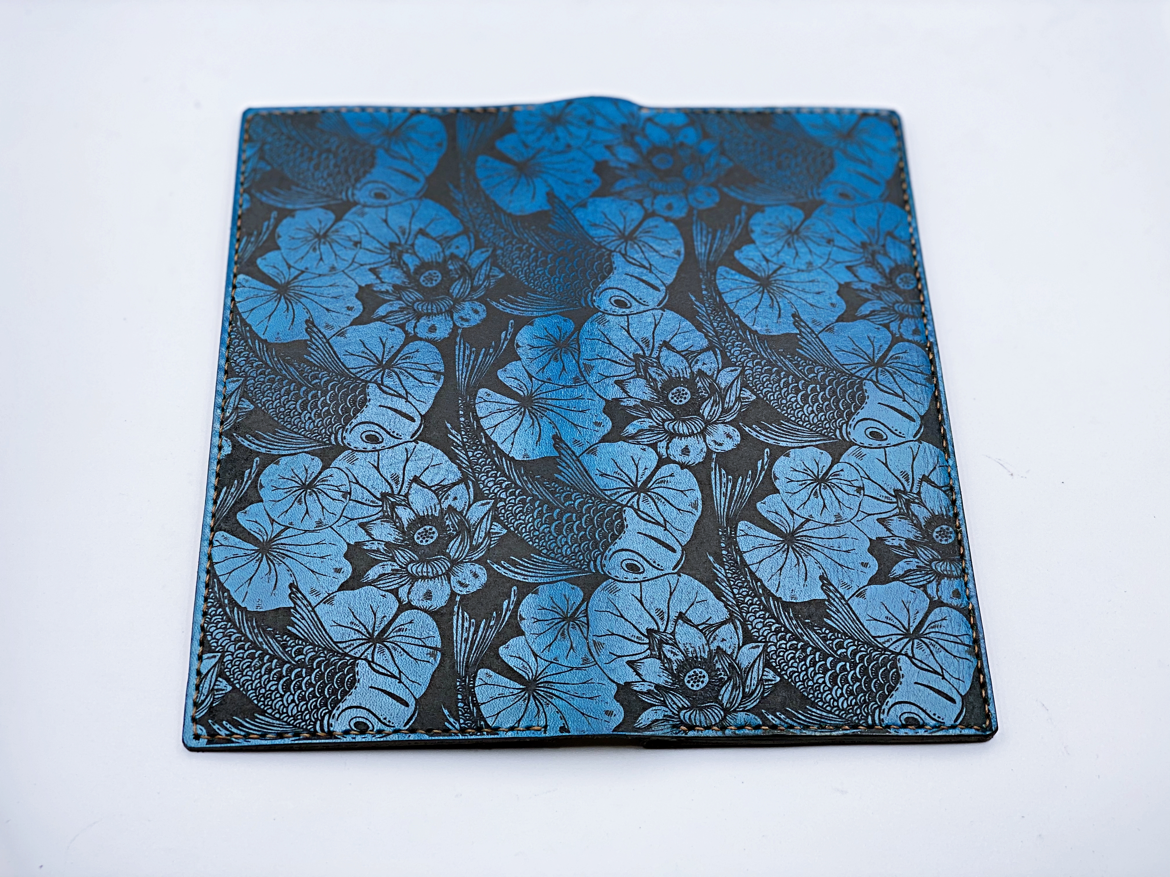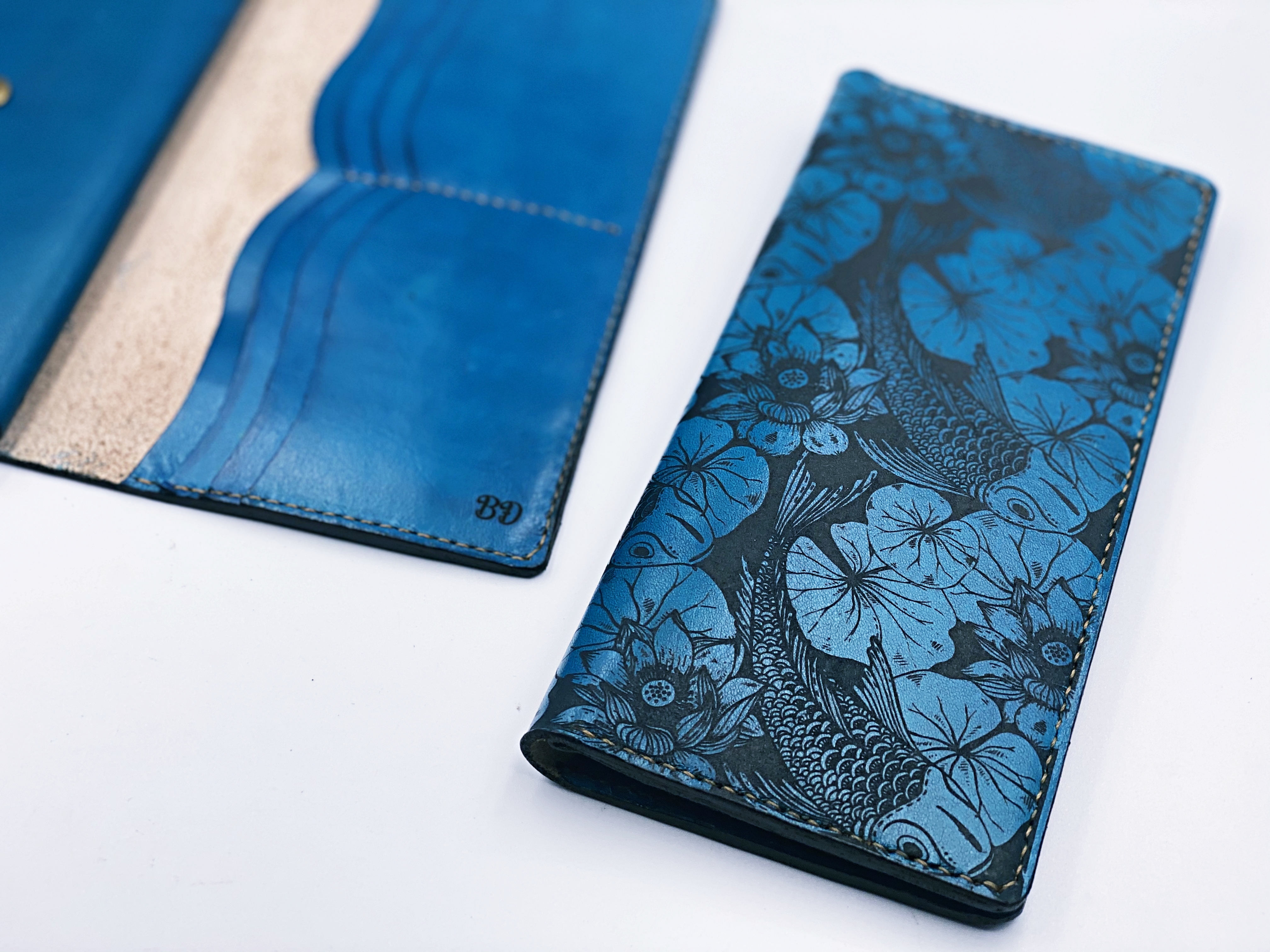 ✨Ví nữ cầm tay da bò handmade họa tiết cá Koi