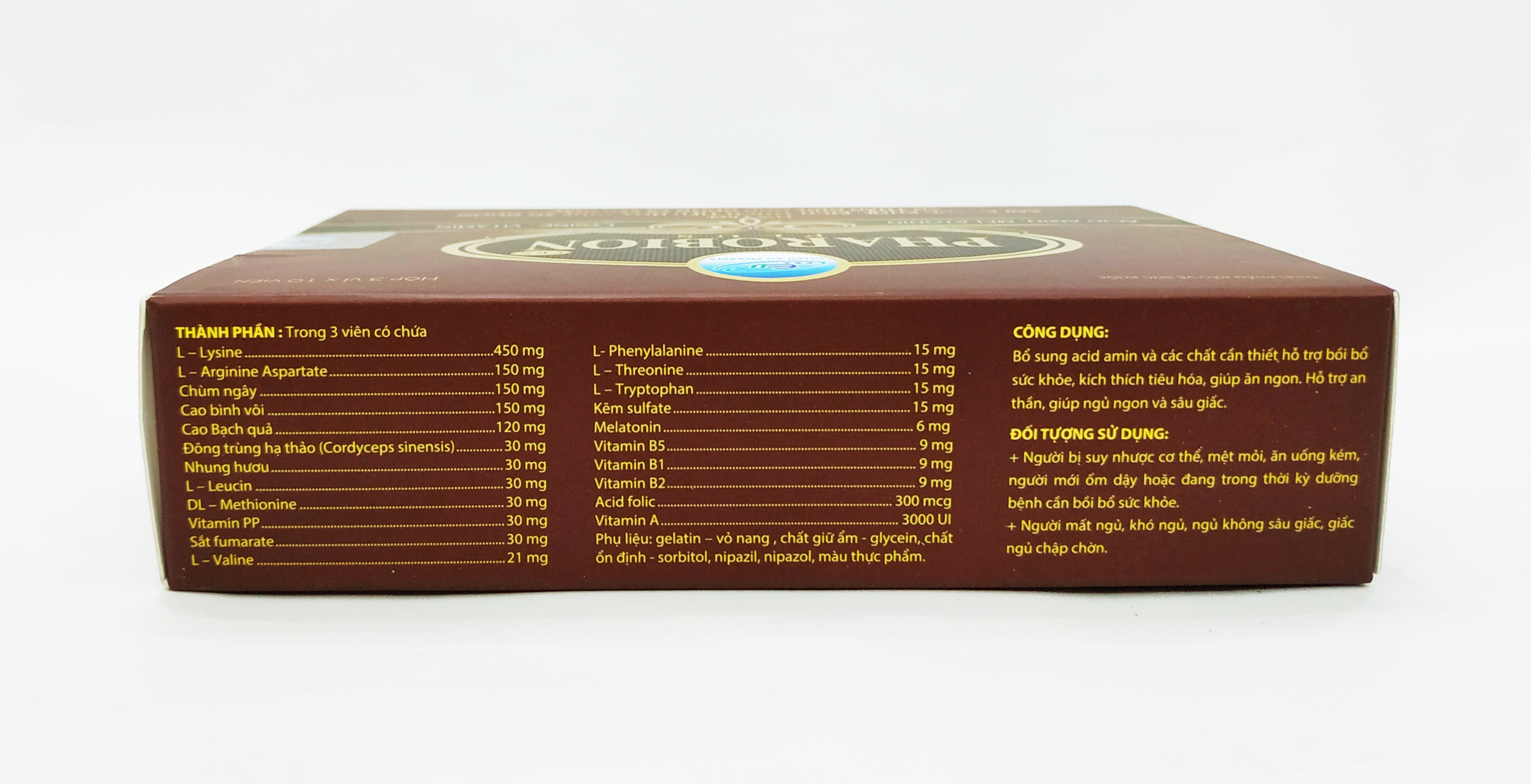 CÔNG DỤNG: Bổ sung acid amin cà các chất cần thiết hỗ trợ bồi bổ sức khỏe, kích thích tiêu hóa, giúp ăn ngon. Hỗ trợ an thần giúp ngủ ngon và sâu giấc
