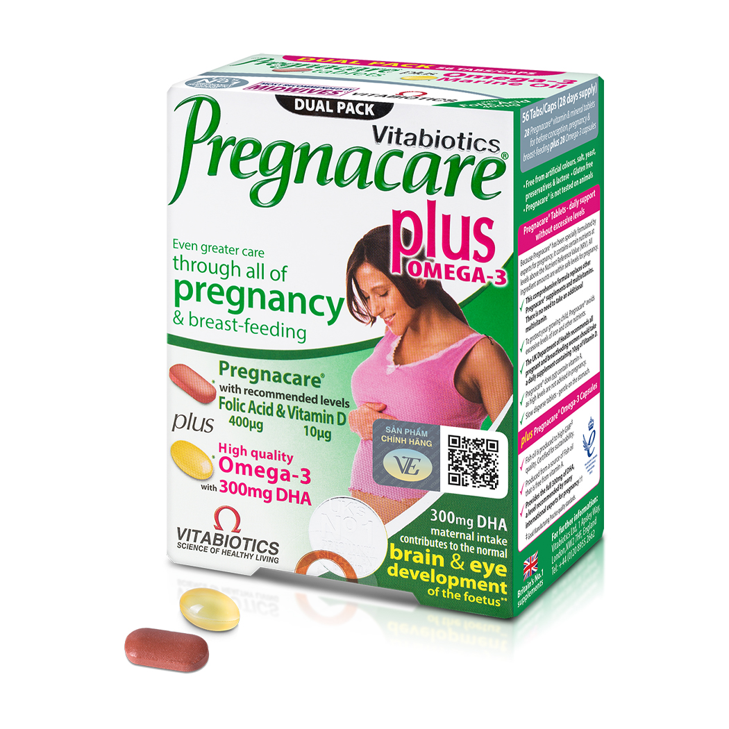 TPCN tăng cường sức khỏe cho phụ nữ mang thai Vitabiotics Pregnacare Plus Omega 3 giúp bổ sung các vitamin và khoáng chất cho phụ nữ mang thai và cho con bú, hỗ trợ tăng cường sức khỏe, hỗ trợ nâng cao sức đề kháng.