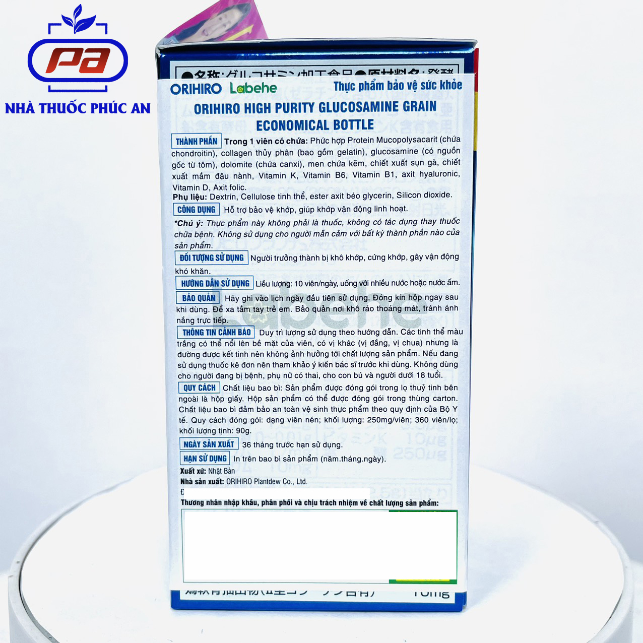 Viên bổ xương khớp Glucosamine ORIHIRO Nhật Bản 1500mg 950 viên NHÀ THUỐC PHÚC AN + Chuyên cung cấp thực phẩm chức năng, mỹ phẩm. + Cam kết hàng chính hãng. + Cam kết sản