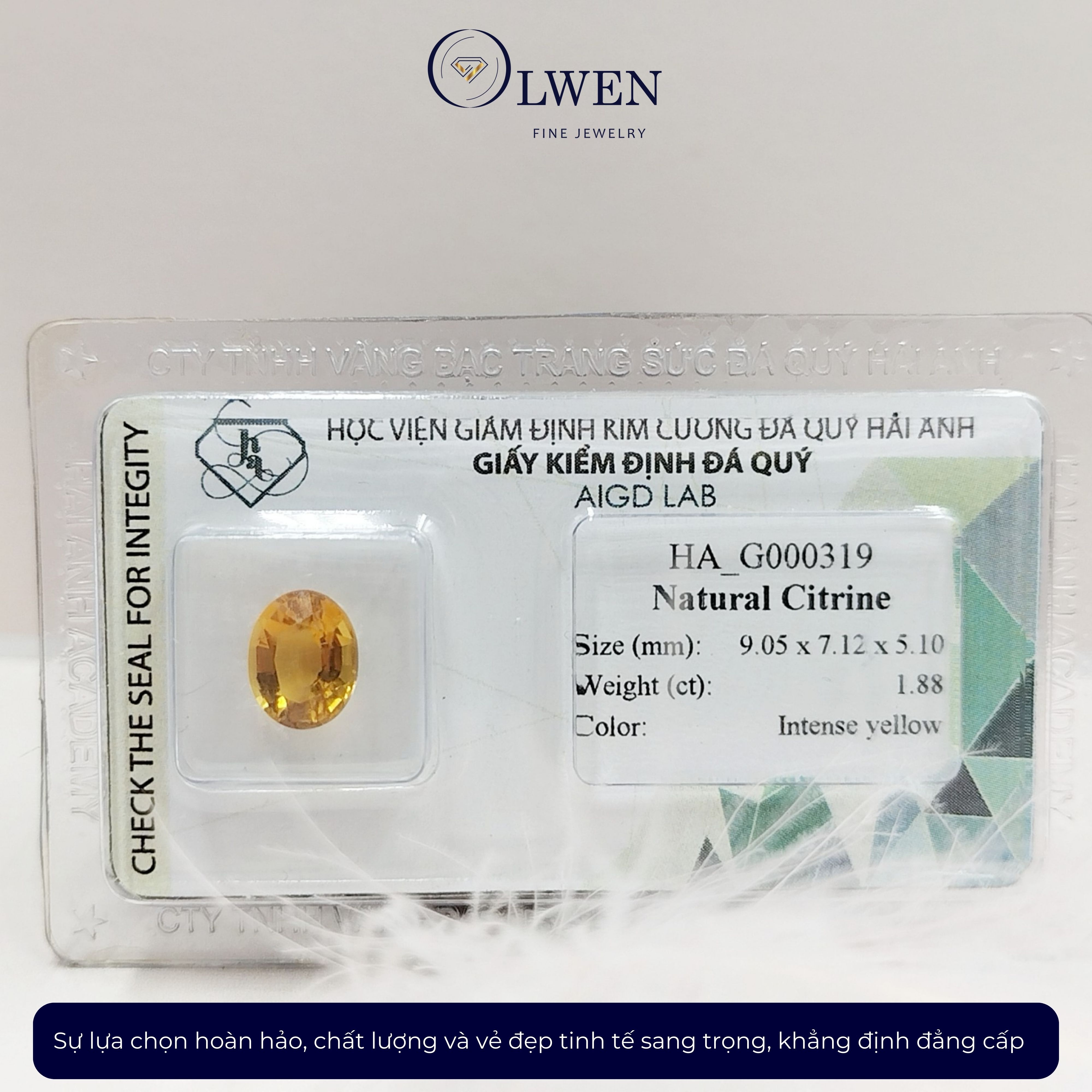 VIÊN ĐÁ THẠCH ANH VÀNG (CITRINE) THIÊN NHIÊN_HA-G000319 Tên sản phẩm: Viên đá thạch anh vàng thiên nhiên_HA-G000319, đá phong thủy. Kích thước: 7.42 x 9.39 x 5.30 mm Trọng lượng: 1.96cts Màu sắc: vàng