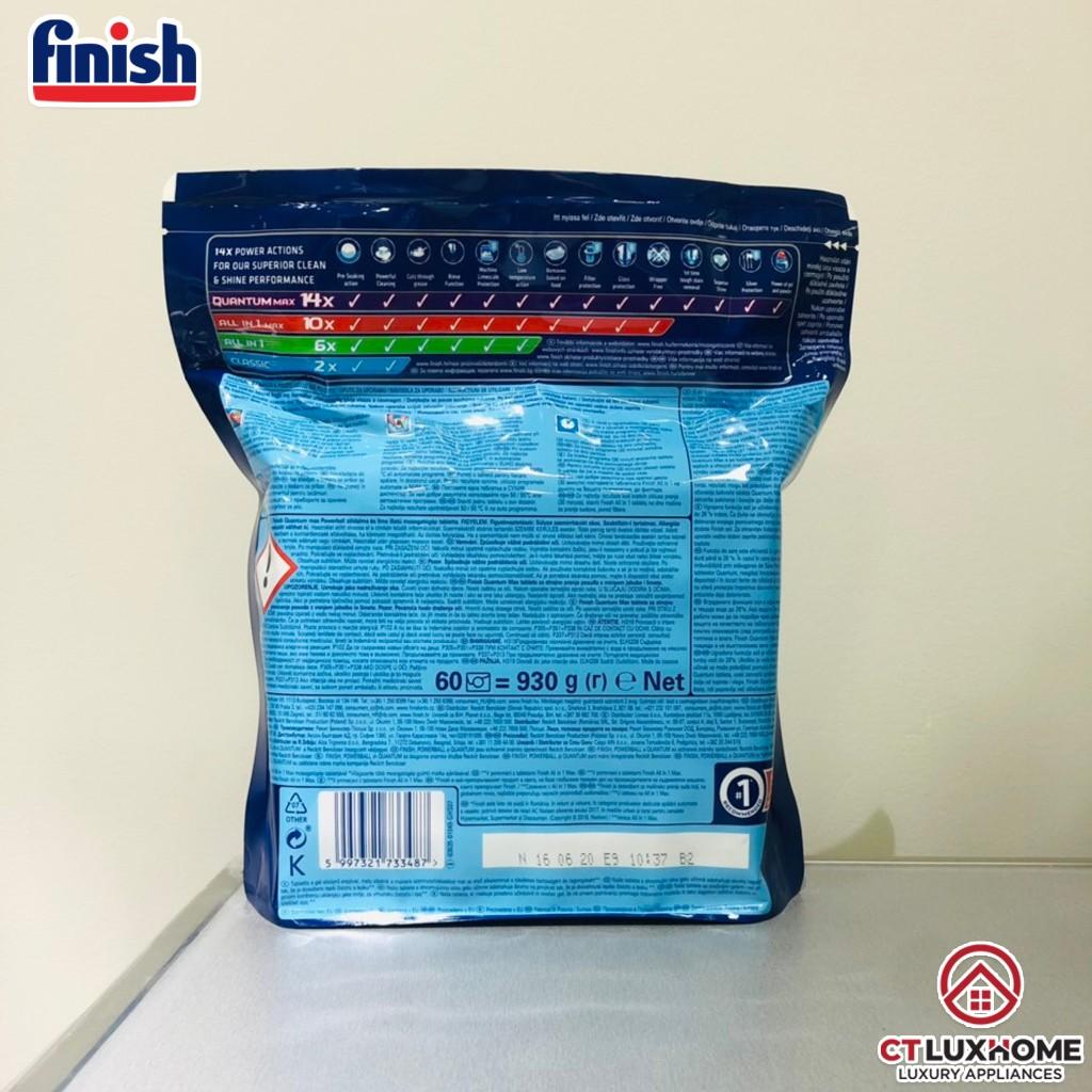 • 1 túi viên rửa chén Finish Quantum Max 60 viên được đóng gói như sau: