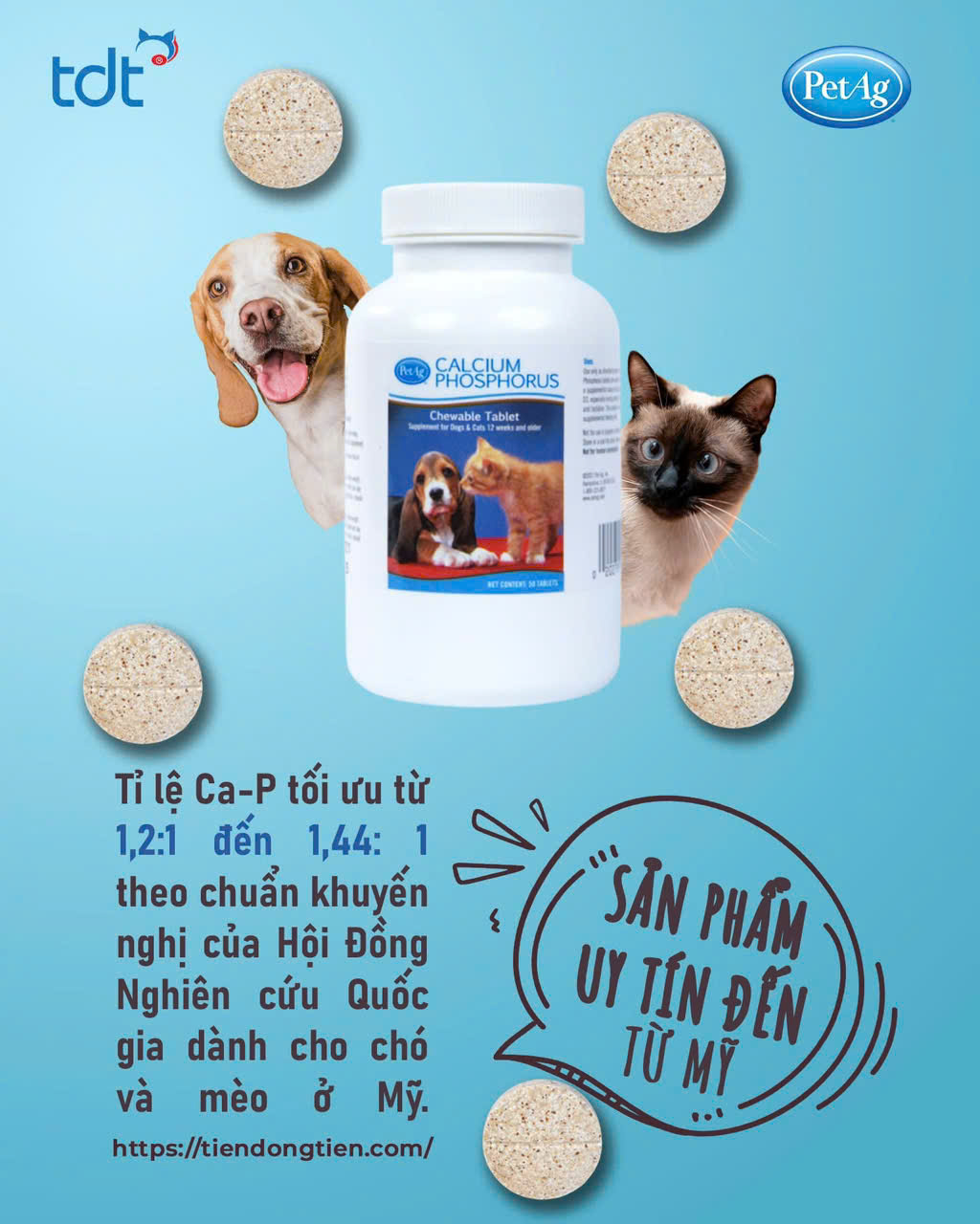Viên Canxi của Mỹ (CALCIUM PHOSPHORUS TABLETS) là sản phẩm đến từ Mỹ, được tin dùng ở Việt Nam từ năm 2007 nhờ vào khả năng bổ sung canxi cực kỳ hiệu quả trên trên chó và mèo.