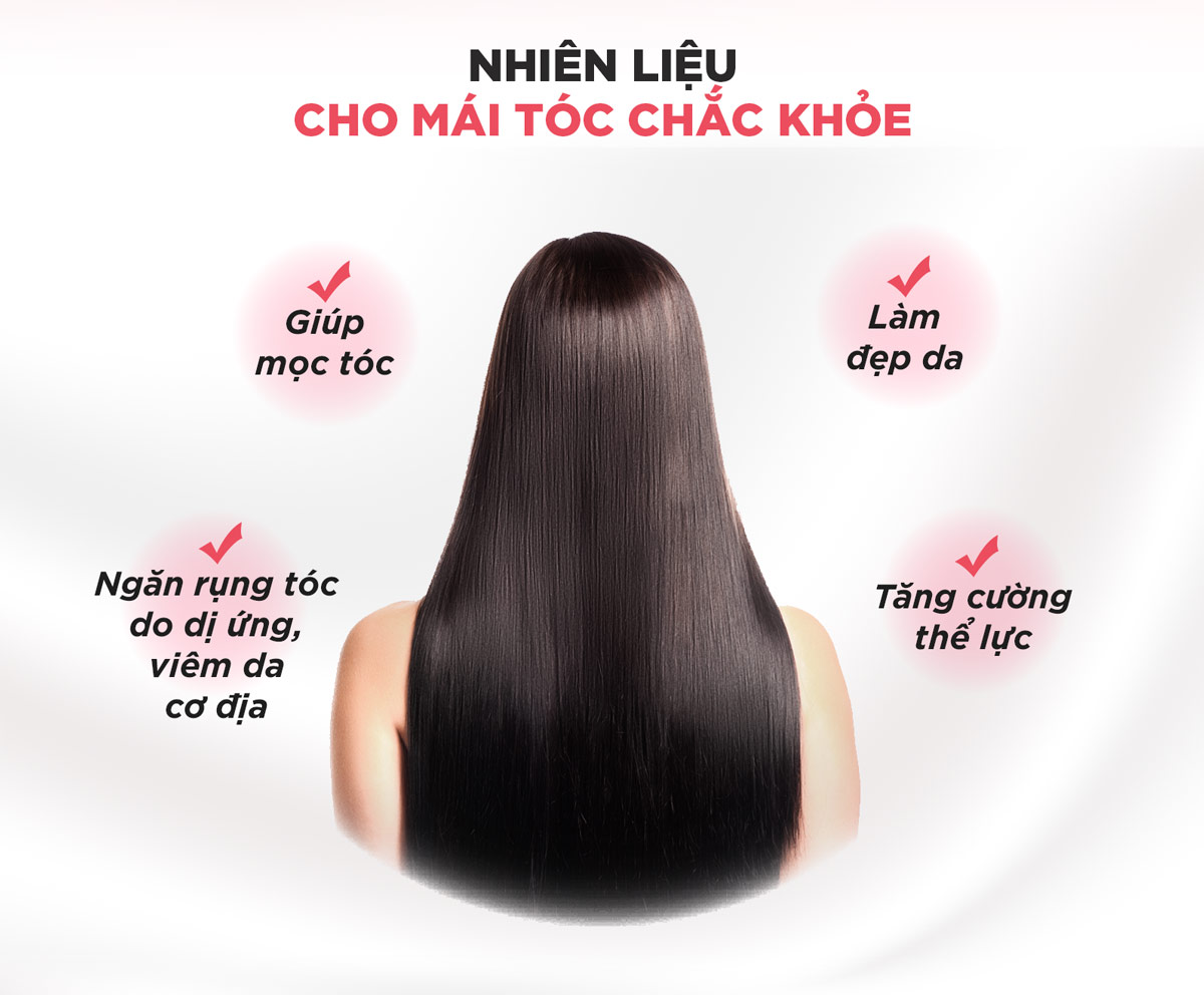 Ngăn ngừa rụng tóc, tăng cường sức khỏe cho tóc, giúp tóc mọc nhanh trở lại bóng đẹp và chắc khỏe Làm chậm quá trình bạc tóc, phục hồi tóc bị hư tổn, gãy, chẻ
