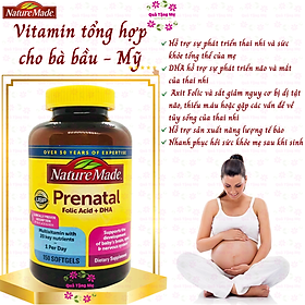 Vitamin tổng hợp cho bà bầu Mỹ Prenatal Folic Acid+ DHA Nature Made giúp phát triển não bộ, hệ thần kinh, xương và mắt của bé, hỗ trợ sức khỏe tổng thể của mẹ