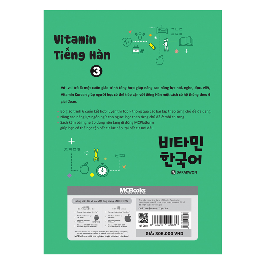 Nếu bạn đã từng băn khoăn không tìm được phương pháp học đúng đắn hay chỉ đơn giản là không chọn được giáo trình ôn luyện tiếng Hàn trong vô vàn sách ngoại ngữ trên thị trường, cuốn sách Vitamin tiếng Hàn 3 nằm trong bộ Vitamin tiếng Hàn cung cấp chu trình học dễ hiểu, hấp dẫn giúp bạn chinh phục tiếng Hàn trình độ sơ cấp.