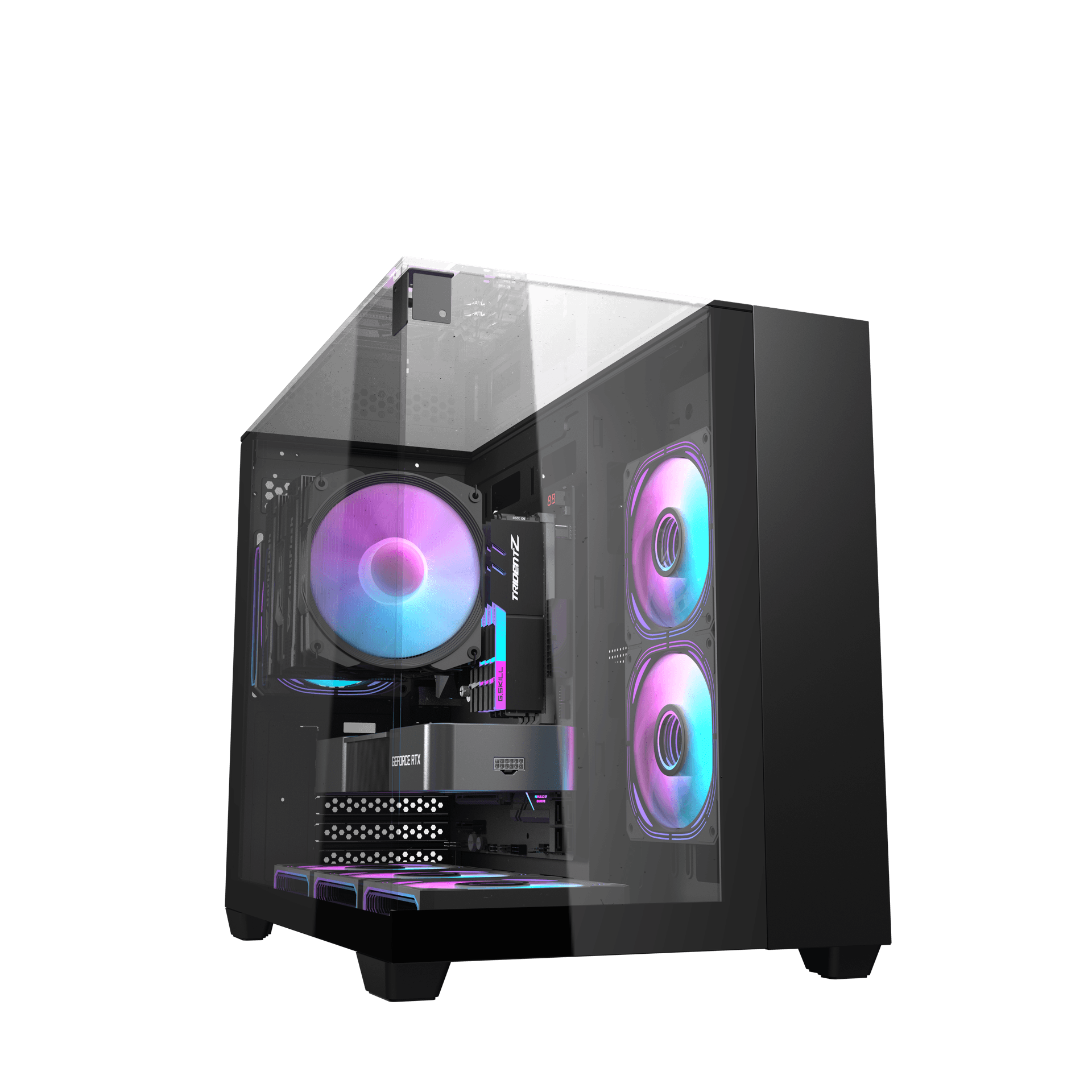 - Khung thân SPCC 0.5T sơn phủ đen - Kích thước nguồn ATX - Kích thước MB ATX - Mặt trước Kính cường lực - Mặt trên Vỏ bọc từ - Mặt trái Kính cường