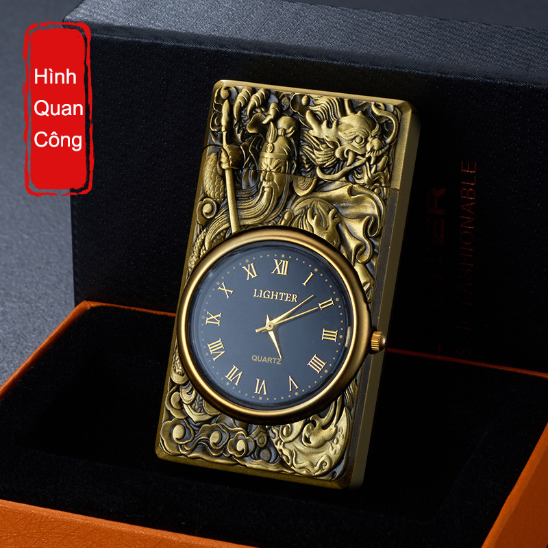 ✨Vỏ Hột Quẹt Bật Lửa Gas HF602 Hình Quan Công Kiêm Đồng Hồ La Mã Cực Đẹp - Nhiều Màu