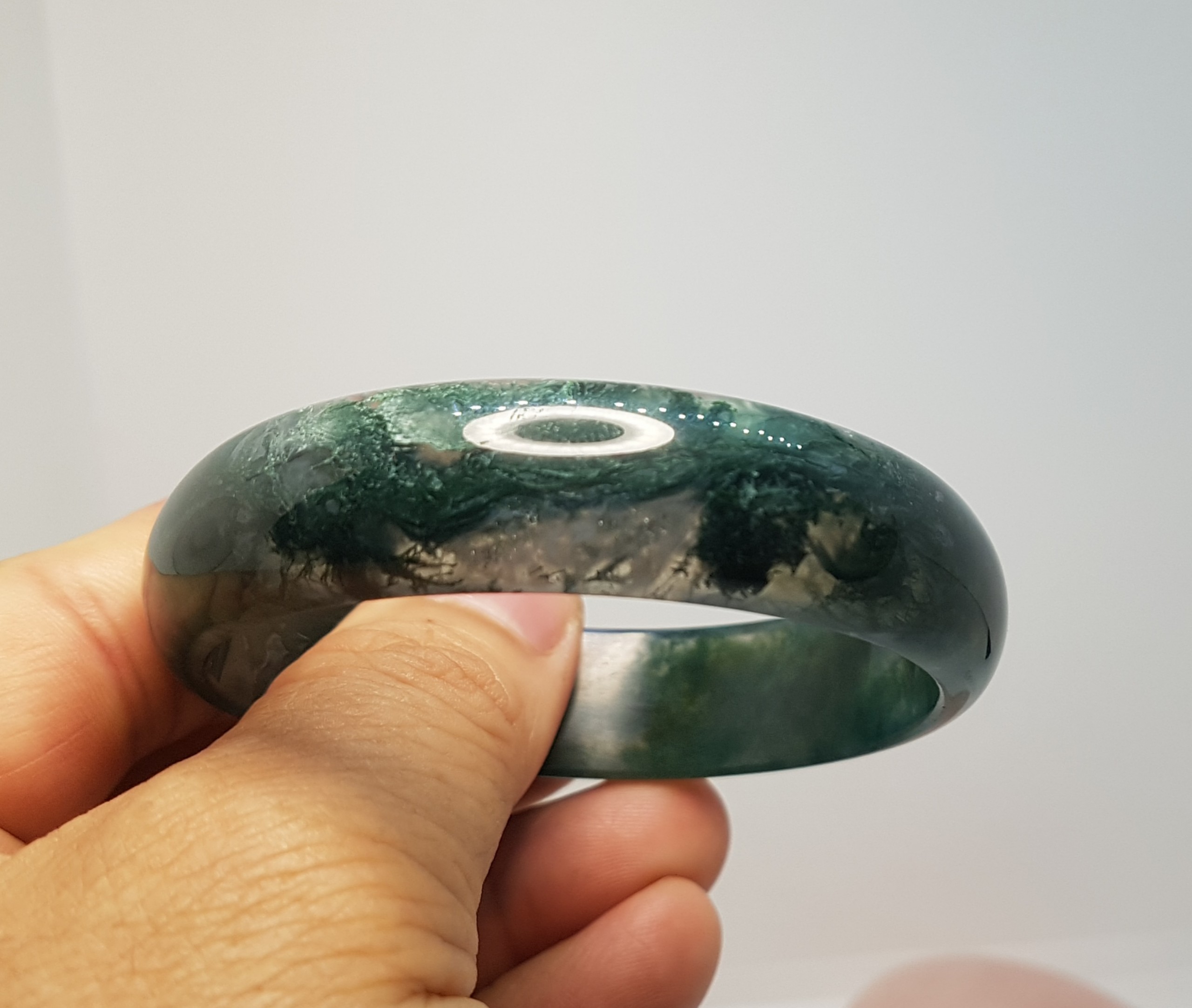 Vòng tay Nữ Đá Cẩm Thạch mới TR Lý 57 mm x cọng 7,5mm Màu Xanh lý tươi trắng 2 bên đều vòng đẹp Nữ 55kg - 64kg đeo đẹp món quà tặng chính mình