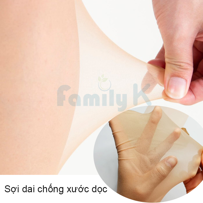 Quần tất không rách. Công nghệ dệt sợi NISSHINBO của Nhật Bản giúp sợi vải co giãn, chống rút sợi khi bị xước. Thiết kế 3D ôm sát cơ thể, đặc biệt các sợi làm
