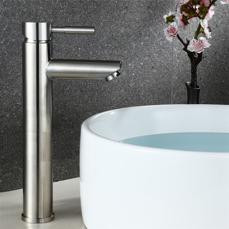 Thiết kế thân vòi cao khác biệt so với các loại vòi thông thường thích hợp với các loại chậu dương bàn tạo không gian mới lạ, hiện đại.
